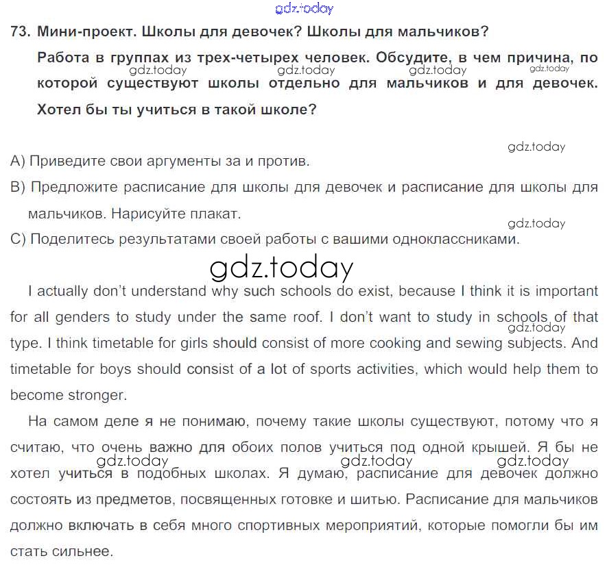 На страницах сайта gdz.today вы найдете учебный и вспомогательный материал, направленный на улучшения знаний школьной программы. ГДЗ - онлайн мир знаний Exercises Unit 3 73 Учебнику по Английскому языку для 7 класса Биболетова, Трубанева Титул, Дрофа УМК 2015, 2017