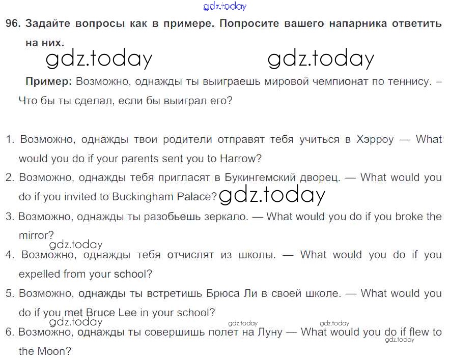 На страницах сайта gdz.today вы найдете учебный и вспомогательный материал, направленный на улучшения знаний школьной программы. ГДЗ - онлайн мир знаний Exercises Unit 3 96 Учебнику по Английскому языку для 7 класса Биболетова, Трубанева Титул, Дрофа УМК 2015, 2017