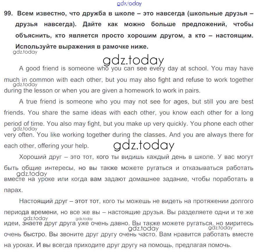 На страницах сайта gdz.today вы найдете учебный и вспомогательный материал, направленный на улучшения знаний школьной программы. ГДЗ - онлайн мир знаний Exercises Unit 3 99 Учебнику по Английскому языку для 7 класса Биболетова, Трубанева Титул, Дрофа УМК 2015, 2017