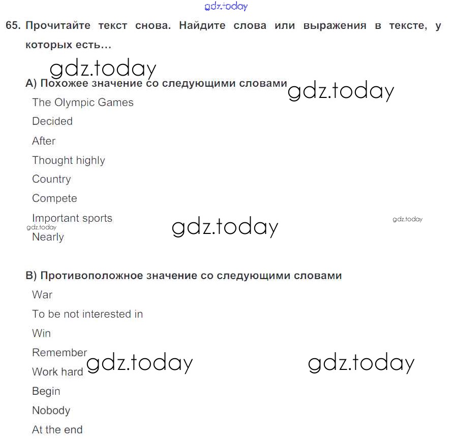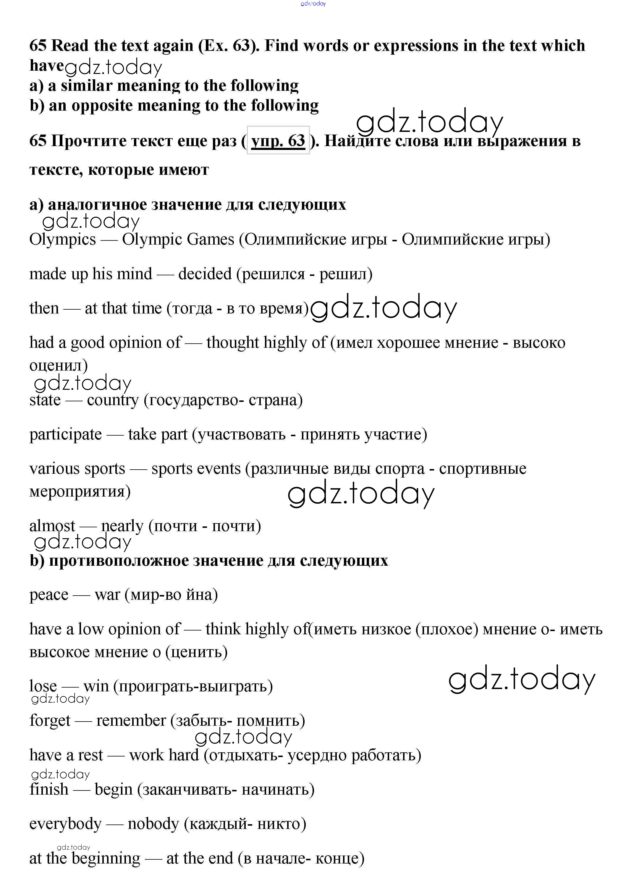 На страницах сайта gdz.today вы найдете учебный и вспомогательный материал, направленный на улучшения знаний школьной программы. ГДЗ - онлайн мир знаний Exercises Unit 4 65 Учебнику по Английскому языку для 7 класса Биболетова, Трубанева Титул, Дрофа УМК 2015, 2017