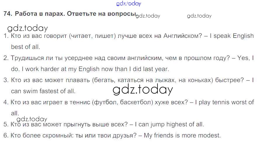 На страницах сайта gdz.today вы найдете учебный и вспомогательный материал, направленный на улучшения знаний школьной программы. ГДЗ - онлайн мир знаний Exercises Unit 4 74 Учебнику по Английскому языку для 7 класса Биболетова, Трубанева Титул, Дрофа УМК 2015, 2017