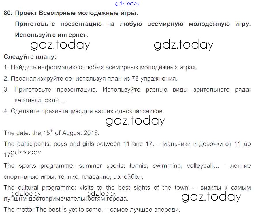 На страницах сайта gdz.today вы найдете учебный и вспомогательный материал, направленный на улучшения знаний школьной программы. ГДЗ - онлайн мир знаний Exercises Unit 4 80 Учебнику по Английскому языку для 7 класса Биболетова, Трубанева Титул, Дрофа УМК 2015, 2017