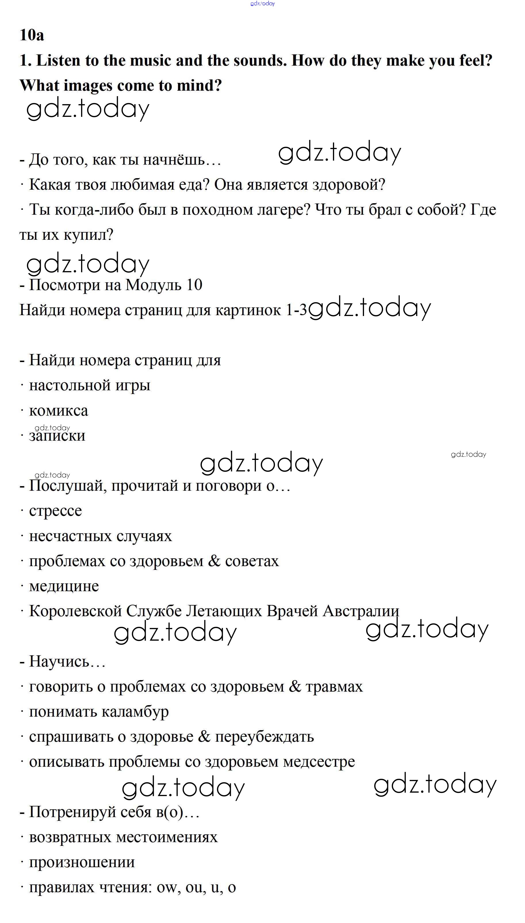 На страницах сайта gdz.today вы найдете учебный и вспомогательный материал, направленный на улучшения знаний школьной программы. ГДЗ - онлайн мир знаний Часть 10a Модуль 10 1 Учебнику по Английскому языку для 7 класса Ваулина, Дули Просвещение Spotlight 2019