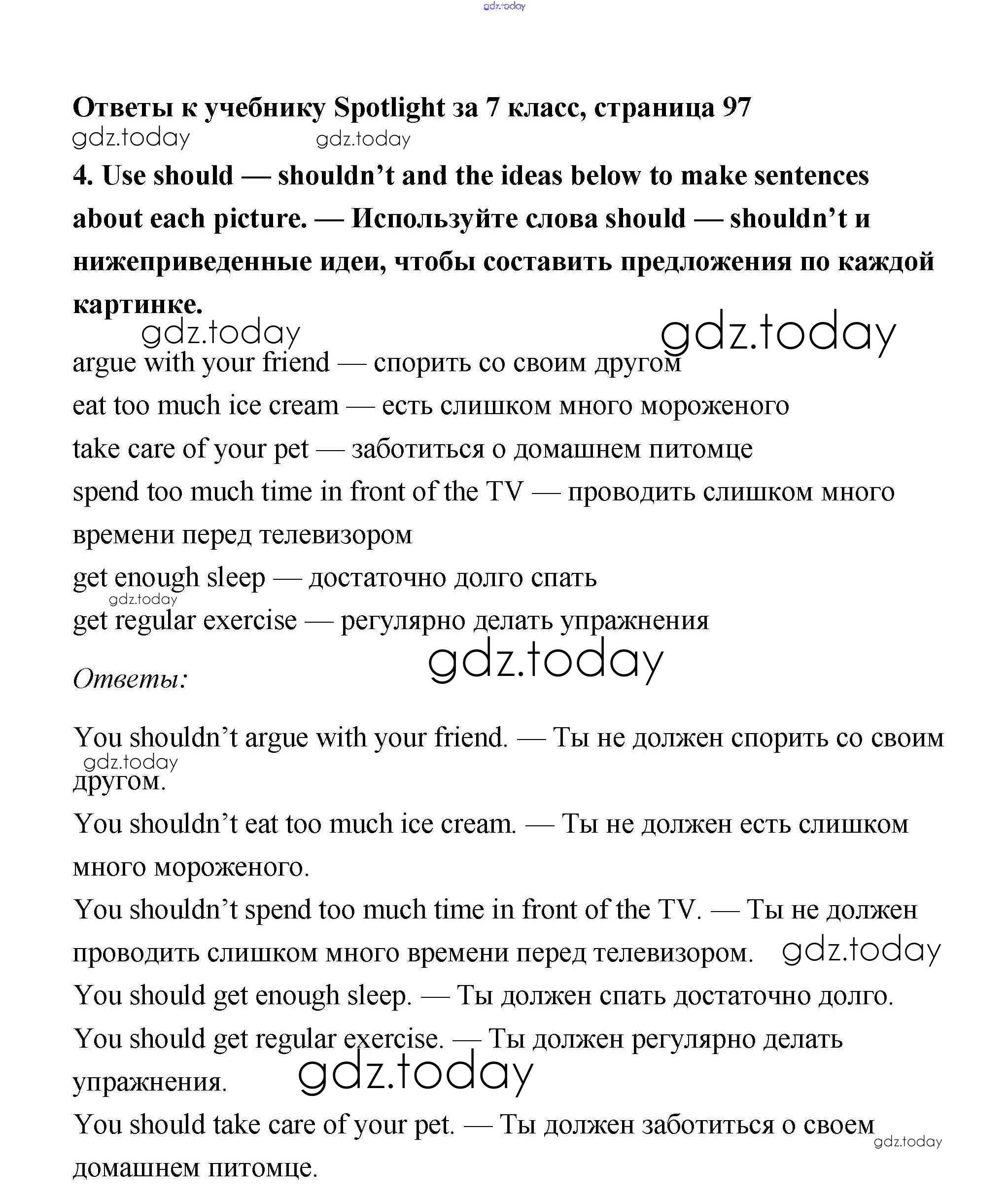 Ответы к Часть 10a Модуль 10 4 Учебнику по Английскому языку для 7 класса Ваулина, Дули Просвещение Spotlight 2019
