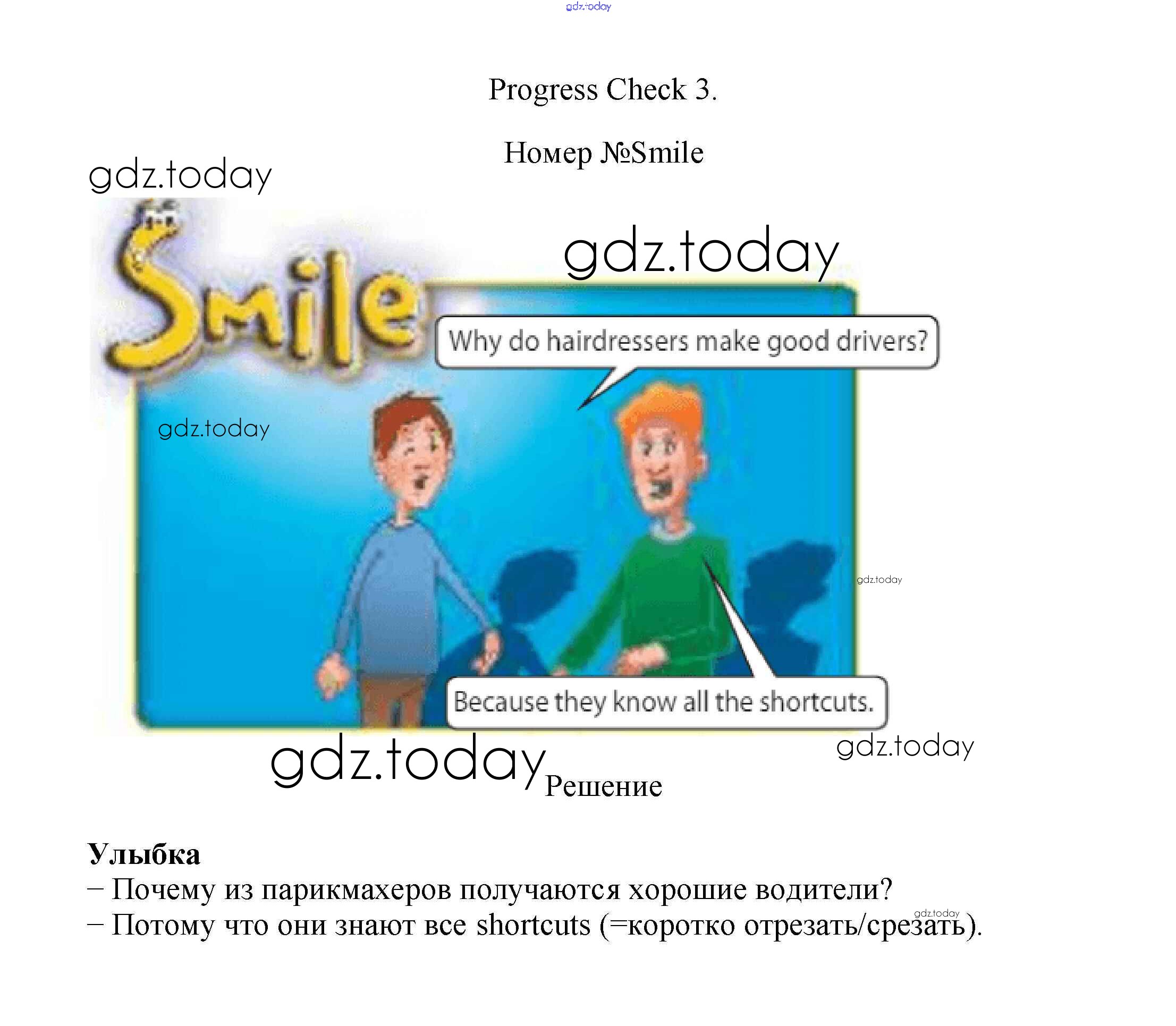 На страницах сайта gdz.today вы найдете учебный и вспомогательный материал, направленный на улучшения знаний школьной программы. ГДЗ - онлайн мир знаний Progress Check Модуль 3 Smile Учебнику по Английскому языку для 7 класса Ваулина, Дули Просвещение Spotlight 2019
