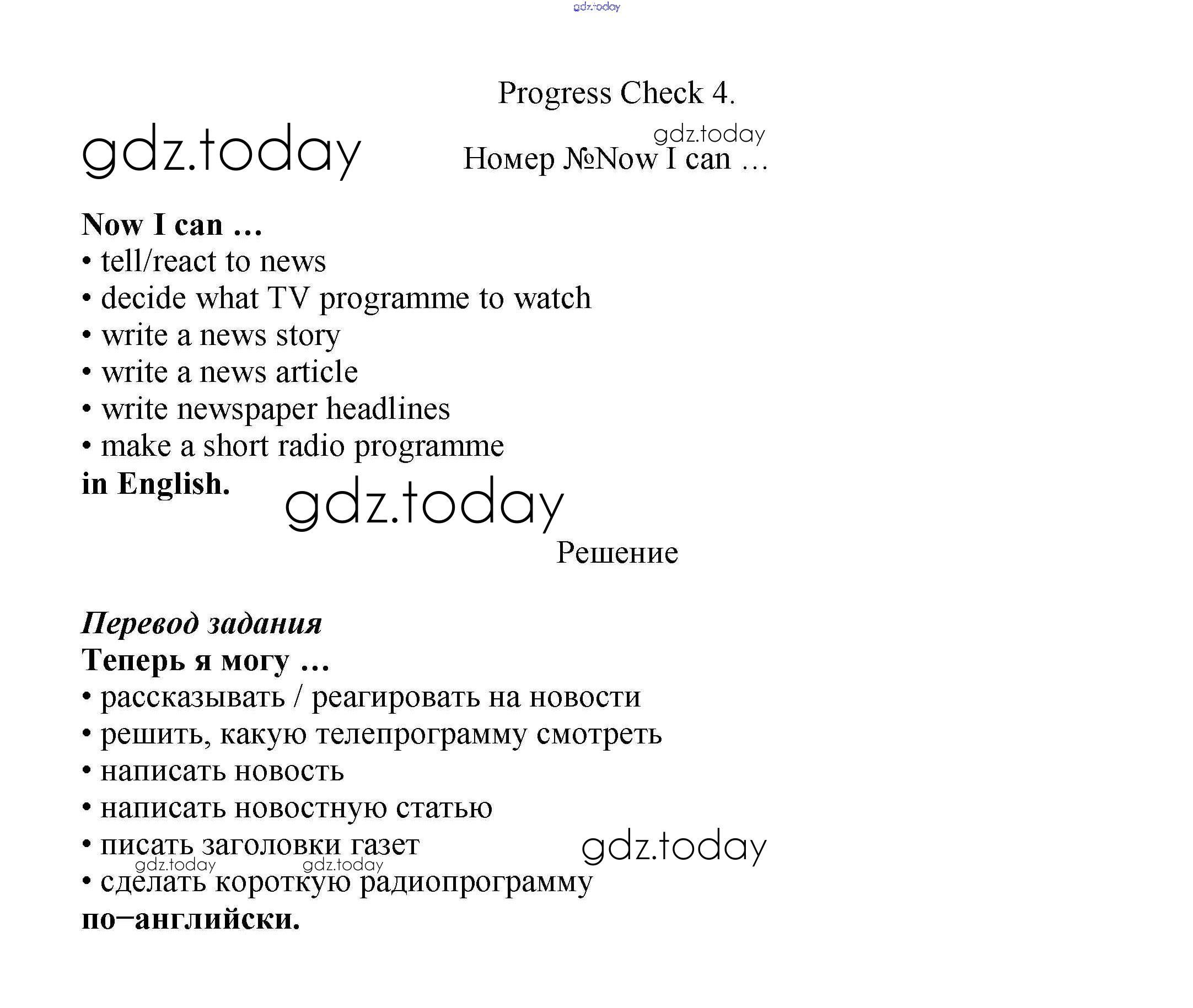 На страницах сайта gdz.today вы найдете учебный и вспомогательный материал, направленный на улучшения знаний школьной программы. ГДЗ - онлайн мир знаний Progress Check Модуль 4 Now I can Учебнику по Английскому языку для 7 класса Ваулина, Дули Просвещение Spotlight 2019