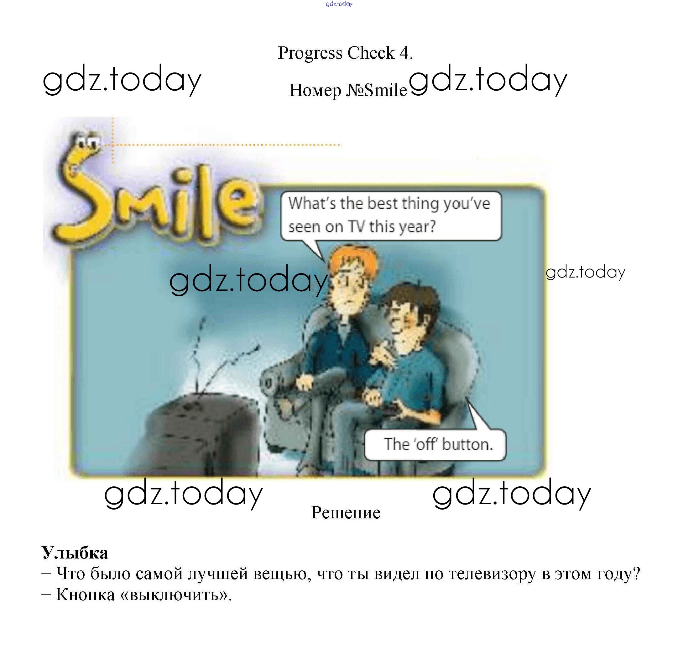На страницах сайта gdz.today вы найдете учебный и вспомогательный материал, направленный на улучшения знаний школьной программы. ГДЗ - онлайн мир знаний Progress Check Модуль 4 Smile Учебнику по Английскому языку для 7 класса Ваулина, Дули Просвещение Spotlight 2019