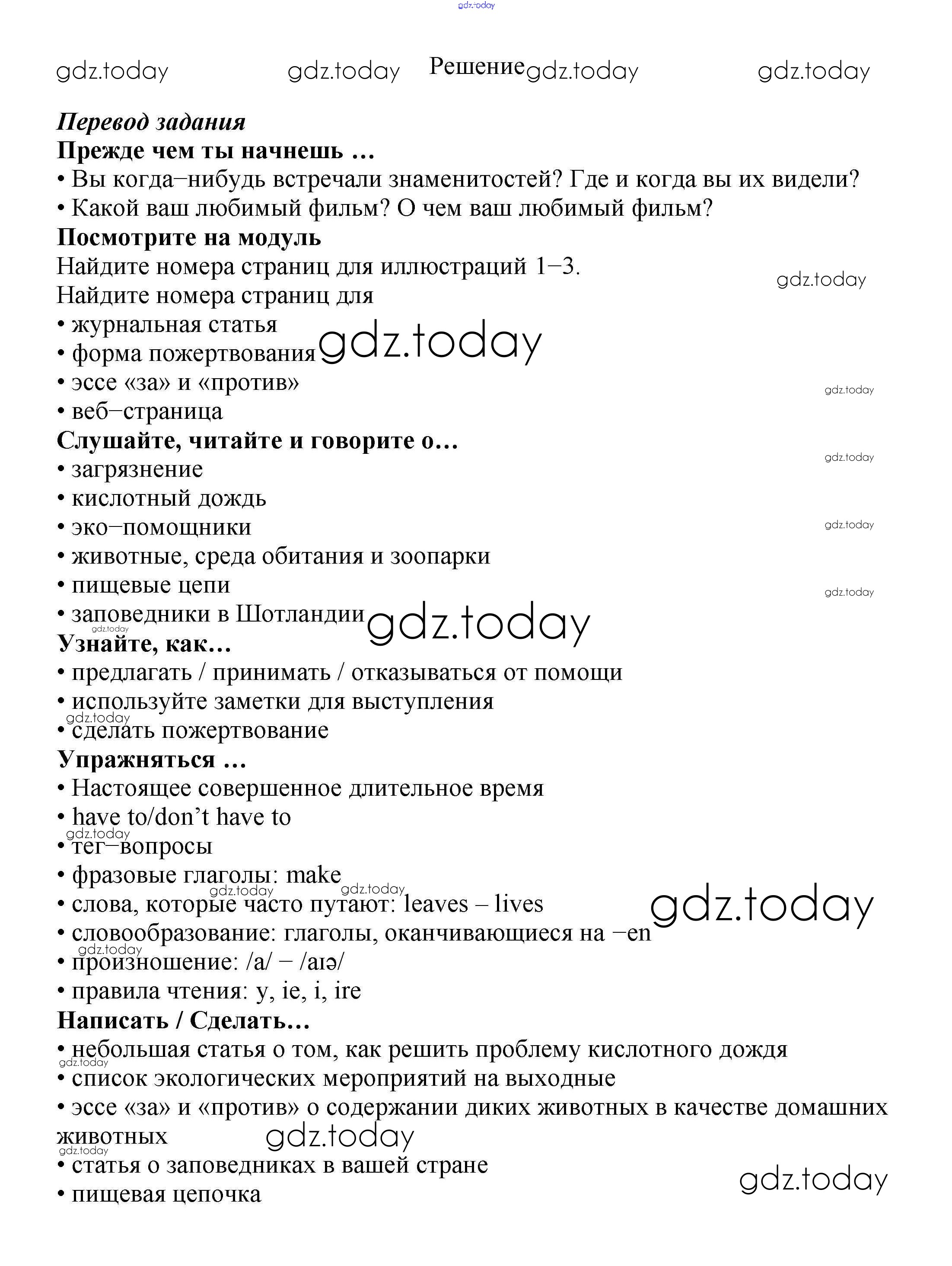 На страницах сайта gdz.today вы найдете учебный и вспомогательный материал, направленный на улучшения знаний школьной программы. ГДЗ - онлайн мир знаний Модуль 8 Spotlight Green issues Учебнику по Английскому языку для 7 класса Ваулина, Дули Просвещение Spotlight 2019