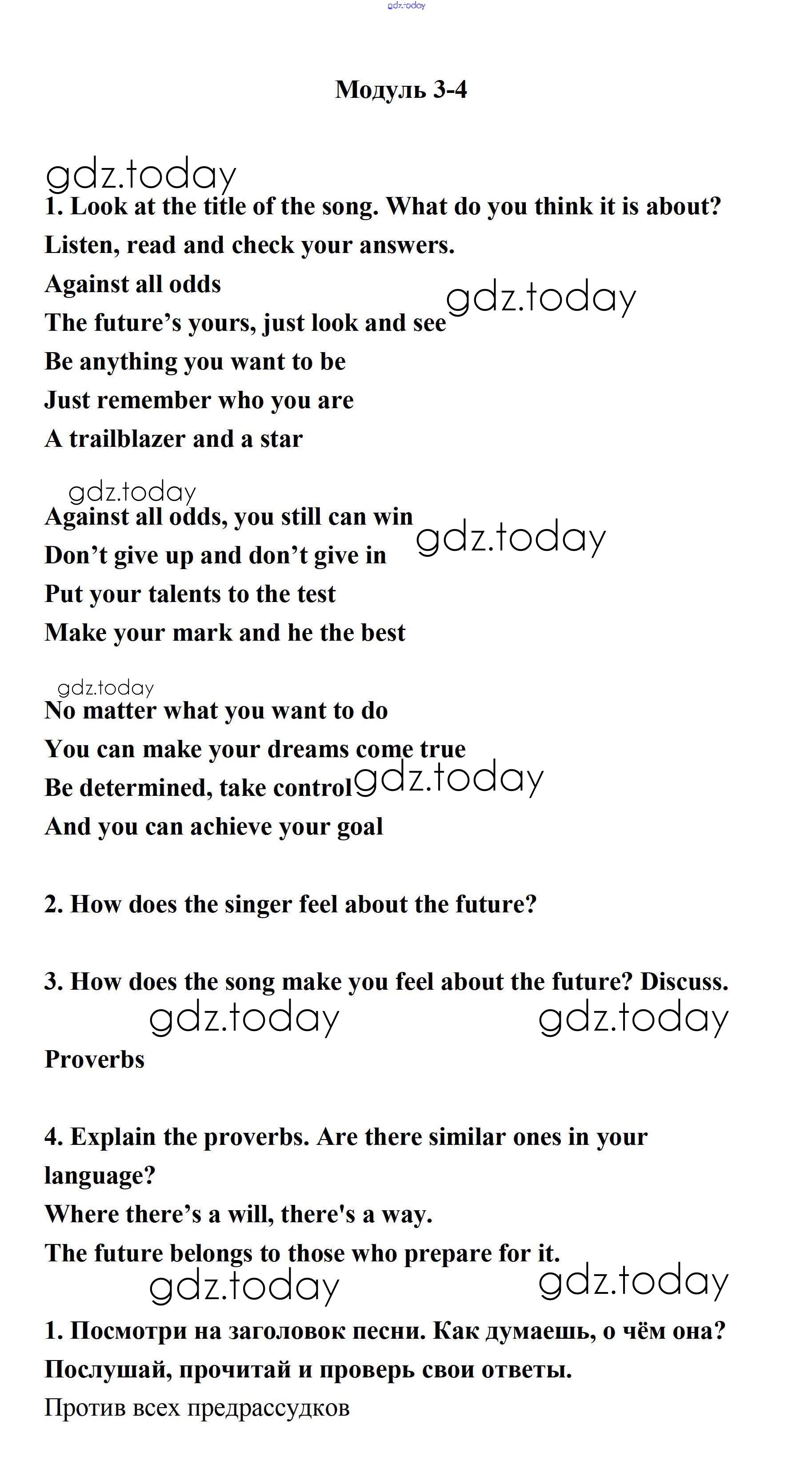 На страницах сайта gdz.today вы найдете учебный и вспомогательный материал, направленный на улучшения знаний школьной программы. ГДЗ - онлайн мир знаний Song Sheets Spotlight (Модули) 3-4 Учебнику по Английскому языку для 7 класса Ваулина, Дули Просвещение Spotlight 2019
