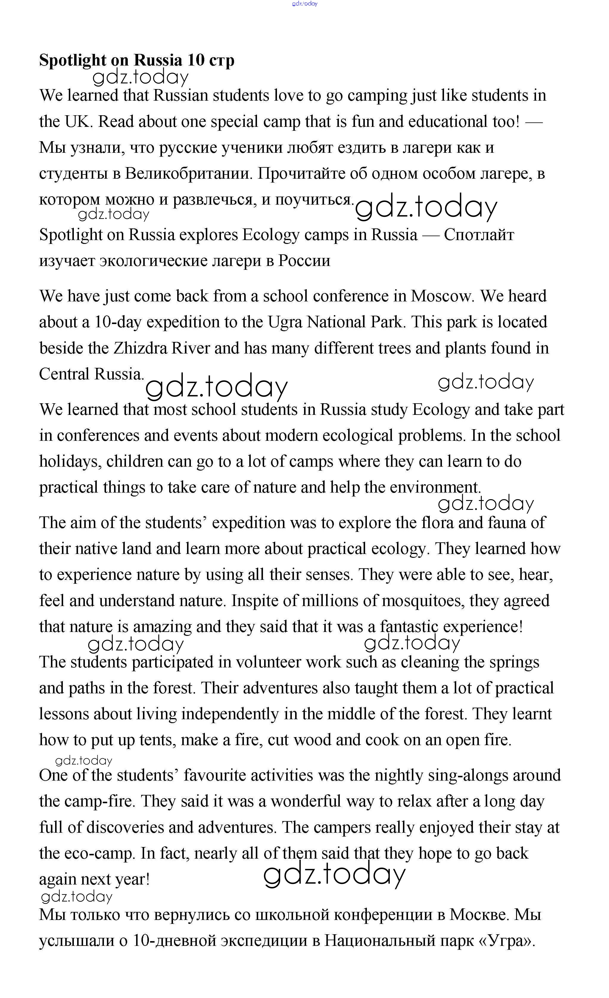 На страницах сайта gdz.today вы найдете учебный и вспомогательный материал, направленный на улучшения знаний школьной программы. ГДЗ - онлайн мир знаний Spotlight on Russia 10 Учебнику по Английскому языку для 7 класса Ваулина, Дули Просвещение Spotlight 2019