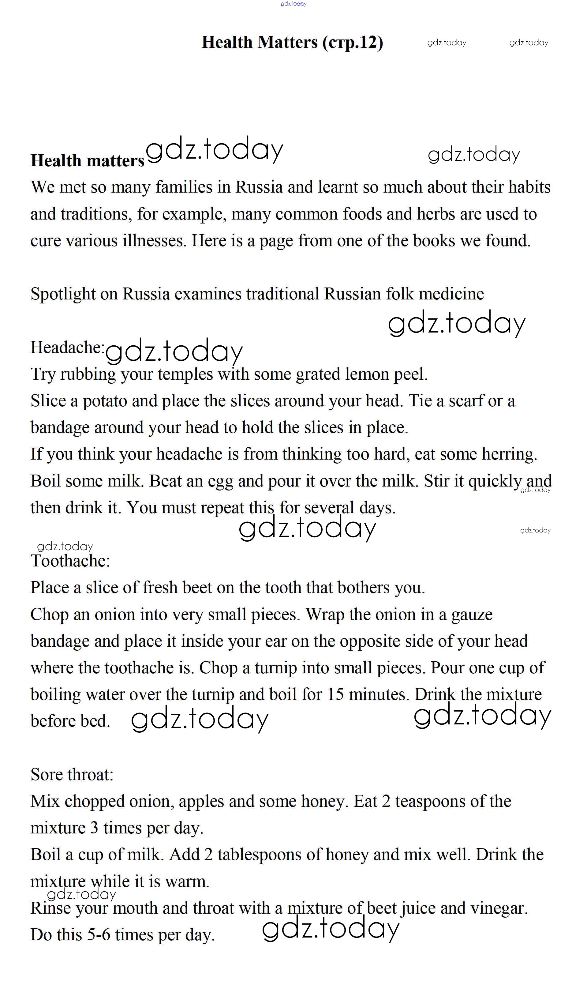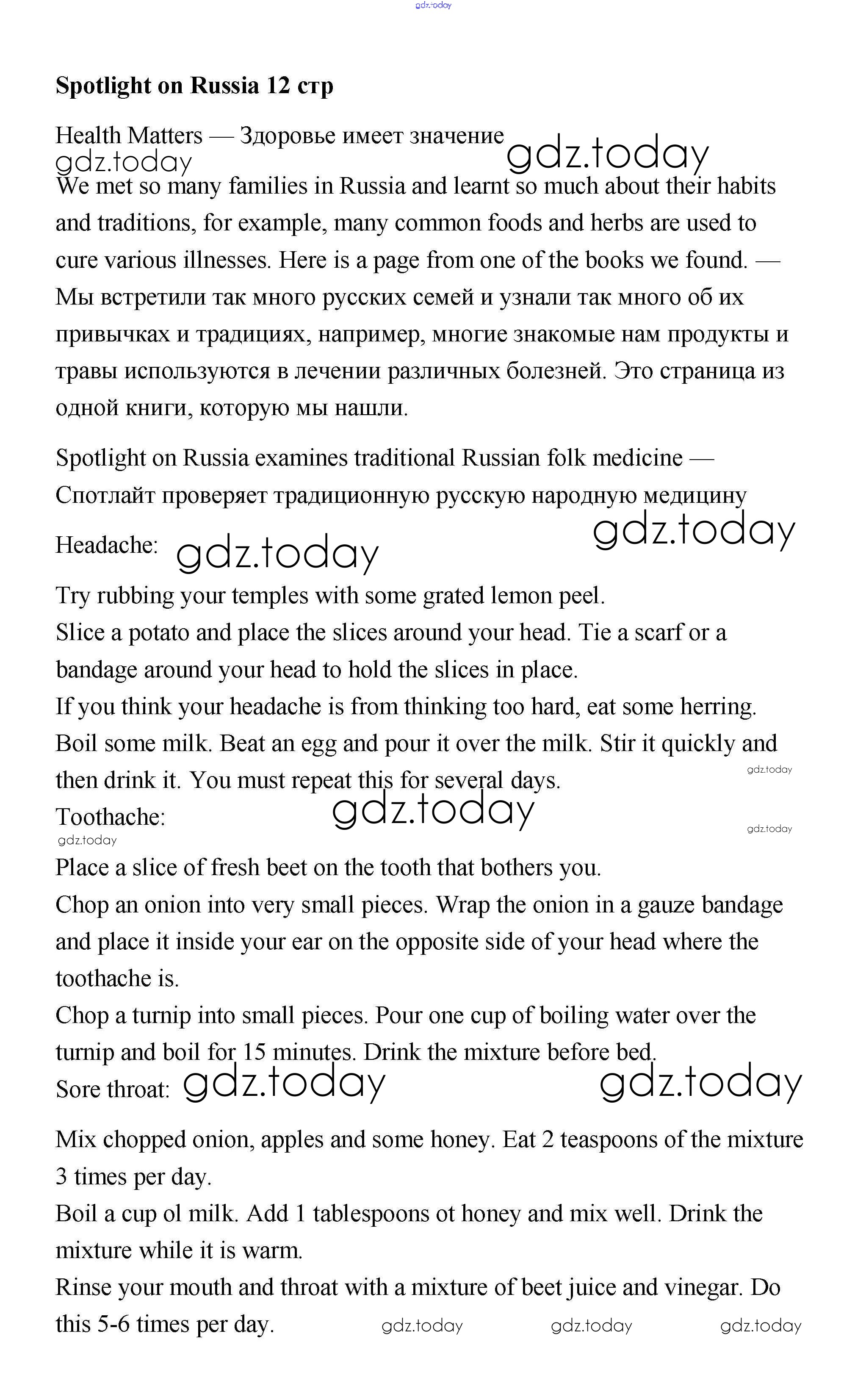 На страницах сайта gdz.today вы найдете учебный и вспомогательный материал, направленный на улучшения знаний школьной программы. ГДЗ - онлайн мир знаний Spotlight on Russia 12 Учебнику по Английскому языку для 7 класса Ваулина, Дули Просвещение Spotlight 2019