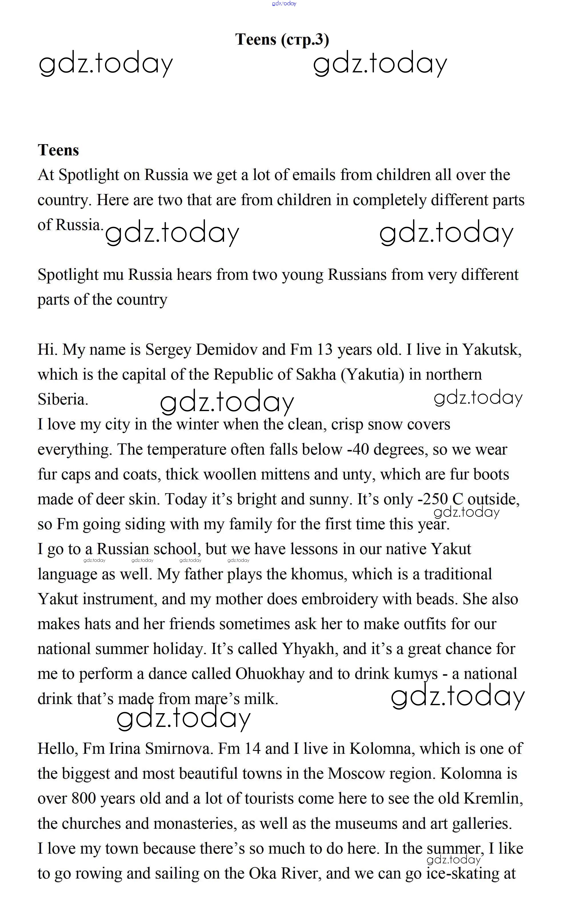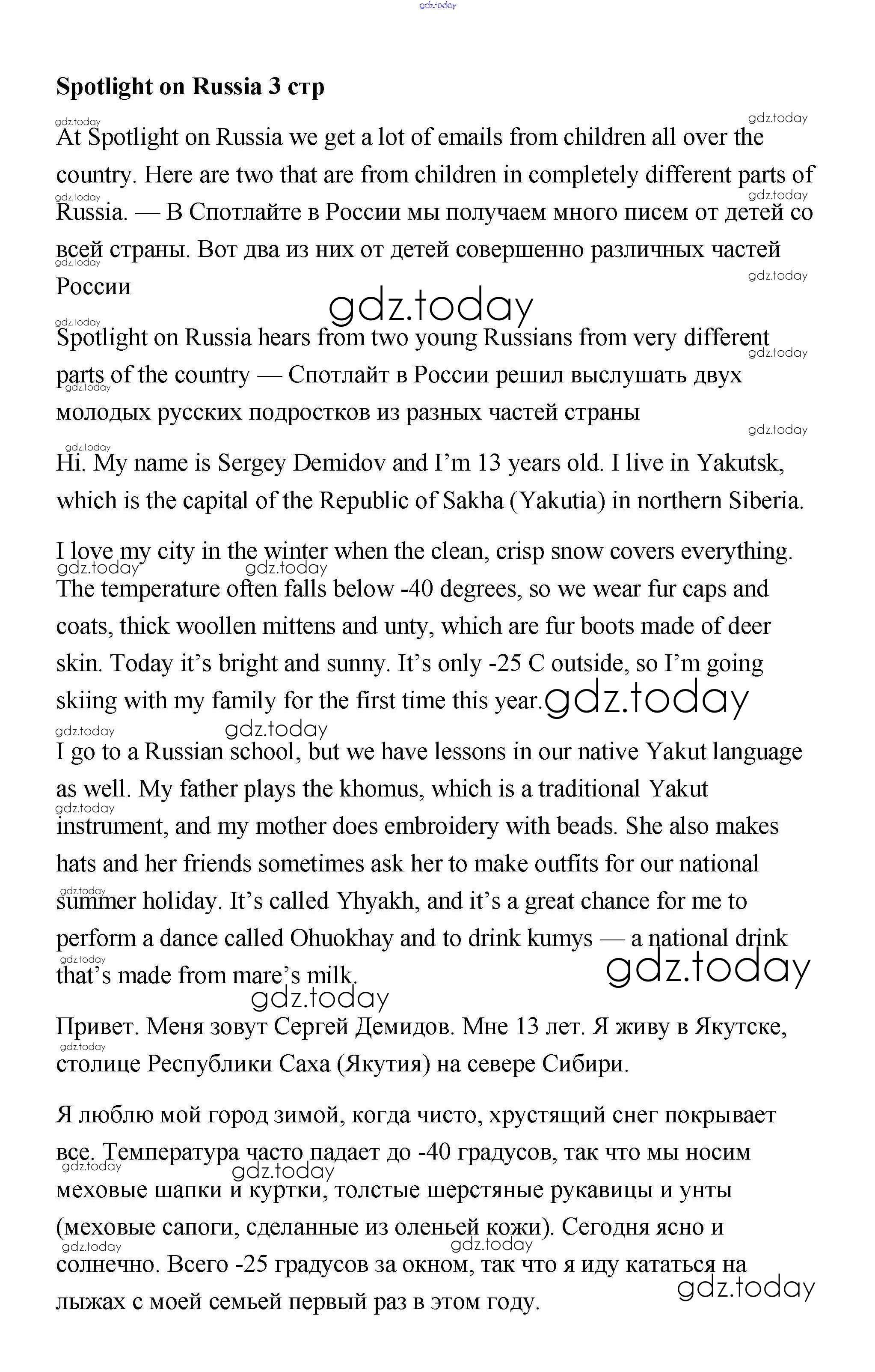 На страницах сайта gdz.today вы найдете учебный и вспомогательный материал, направленный на улучшения знаний школьной программы. ГДЗ - онлайн мир знаний Spotlight on Russia 3 Учебнику по Английскому языку для 7 класса Ваулина, Дули Просвещение Spotlight 2019