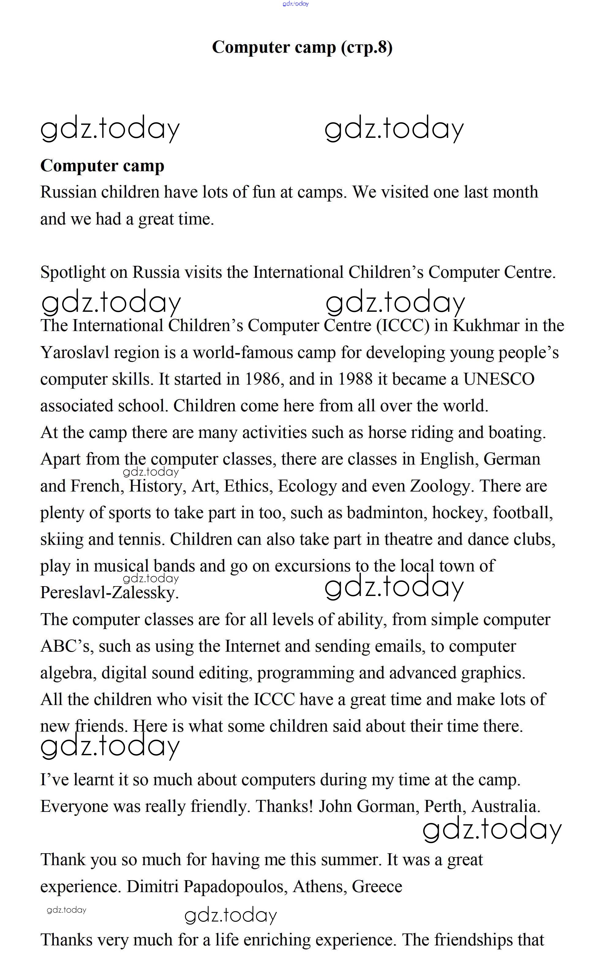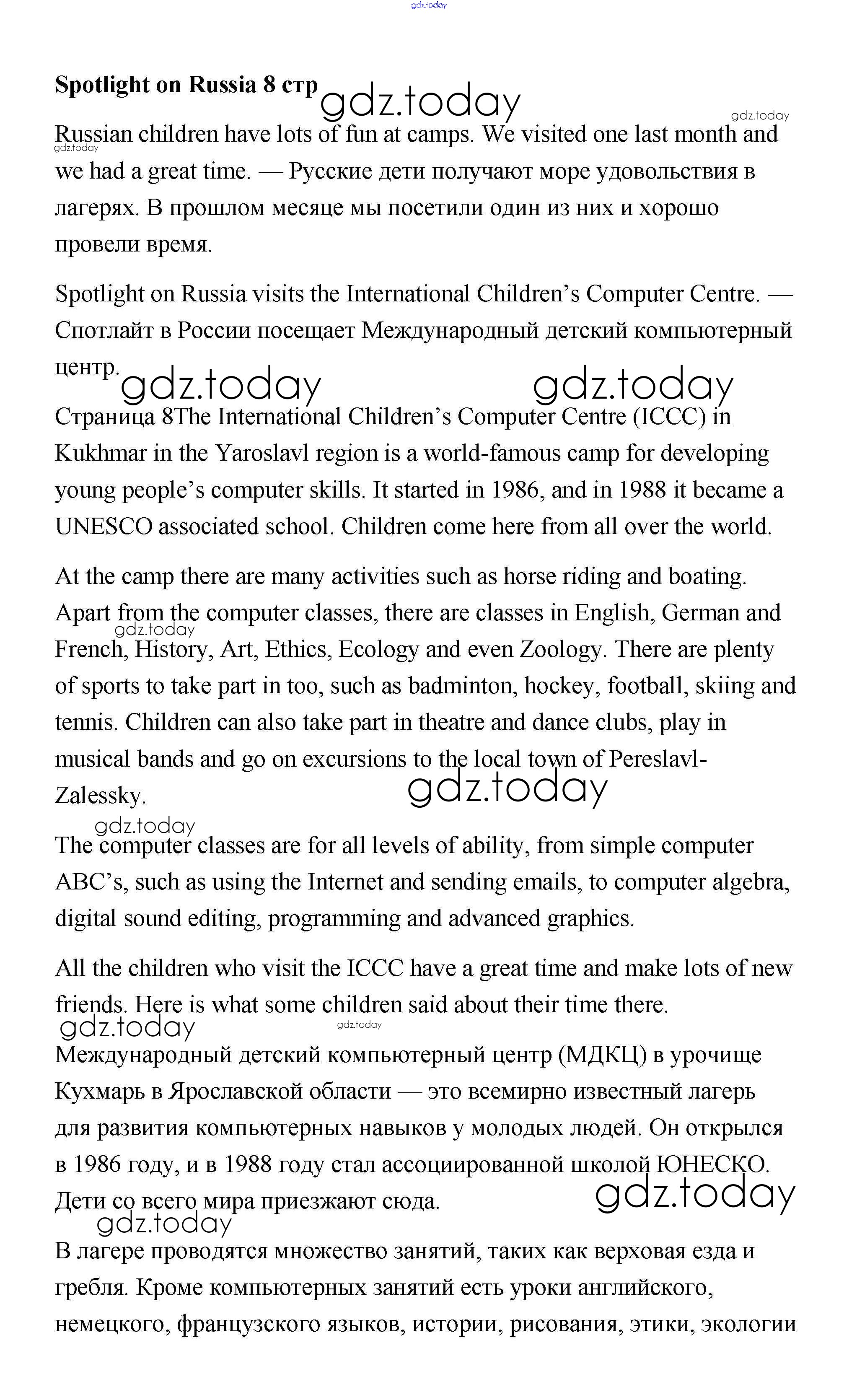 На страницах сайта gdz.today вы найдете учебный и вспомогательный материал, направленный на улучшения знаний школьной программы. ГДЗ - онлайн мир знаний Spotlight on Russia 8 Учебнику по Английскому языку для 7 класса Ваулина, Дули Просвещение Spotlight 2019