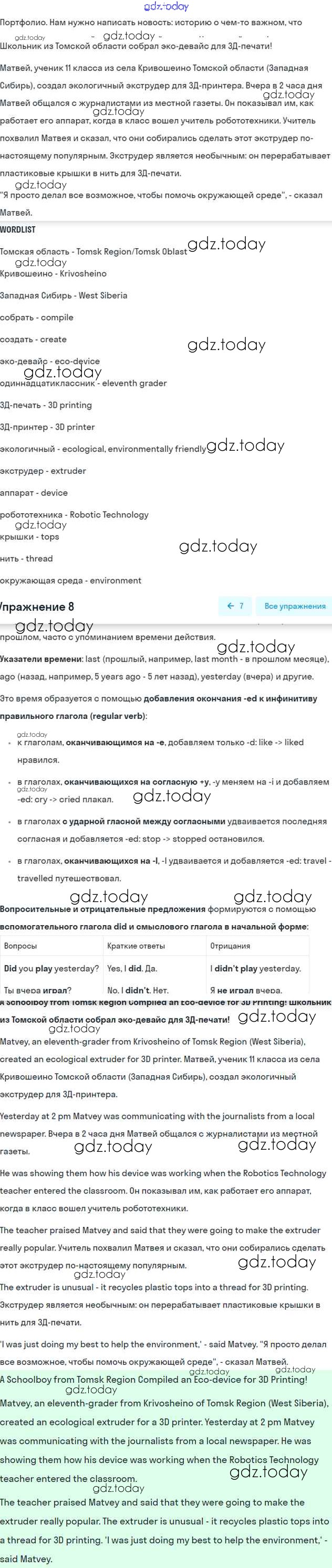 На страницах сайта gdz.today вы найдете учебный и вспомогательный материал, направленный на улучшения знаний школьной программы. ГДЗ - онлайн мир знаний Часть 4a Модуль 4 8 Учебнику по Английскому языку для 7 класса Ваулина, Дули Просвещение Spotlight 2019