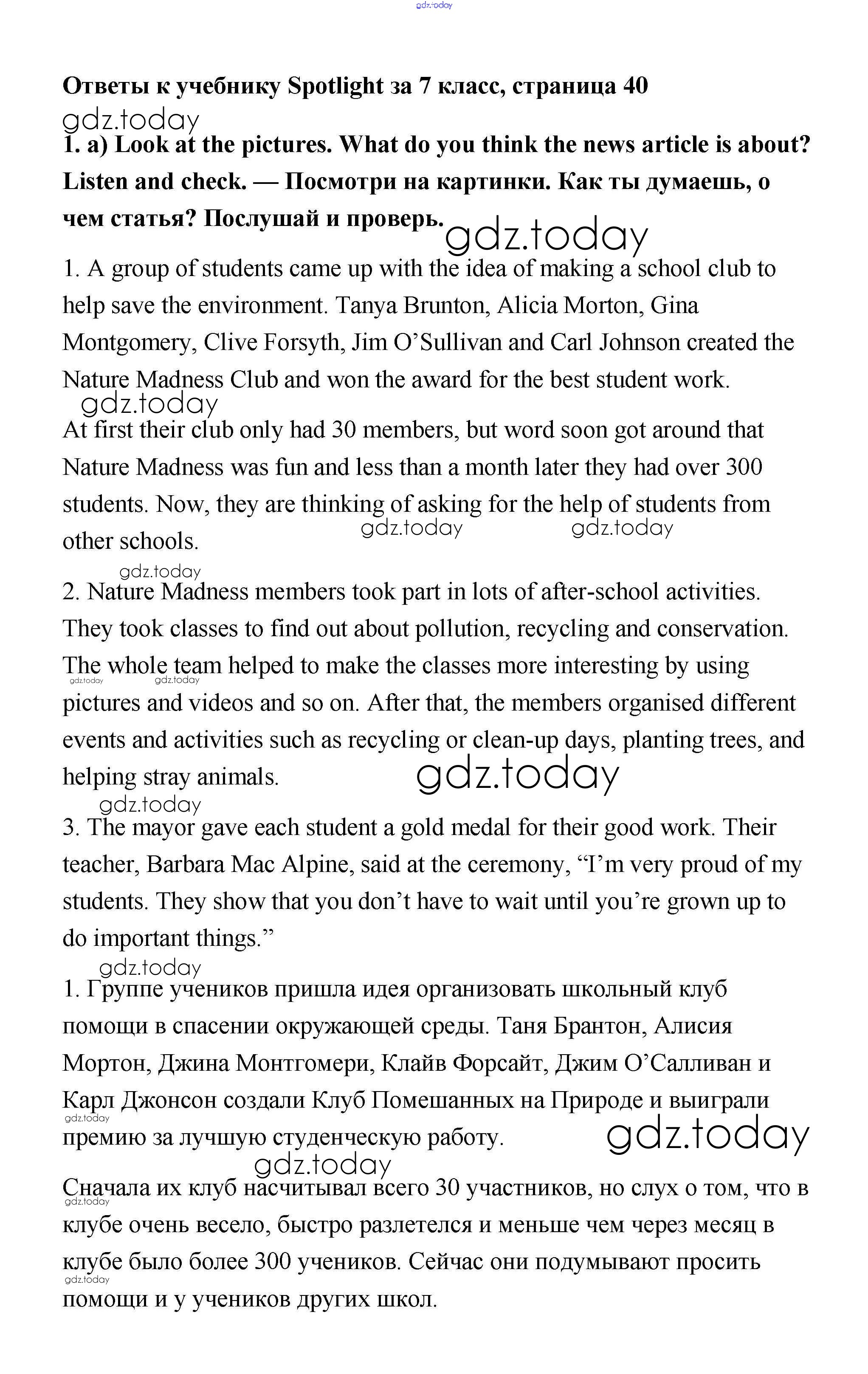 На страницах сайта gdz.today вы найдете учебный и вспомогательный материал, направленный на улучшения знаний школьной программы. ГДЗ - онлайн мир знаний Часть 4c Модуль 4 1 Учебнику по Английскому языку для 7 класса Ваулина, Дули Просвещение Spotlight 2019