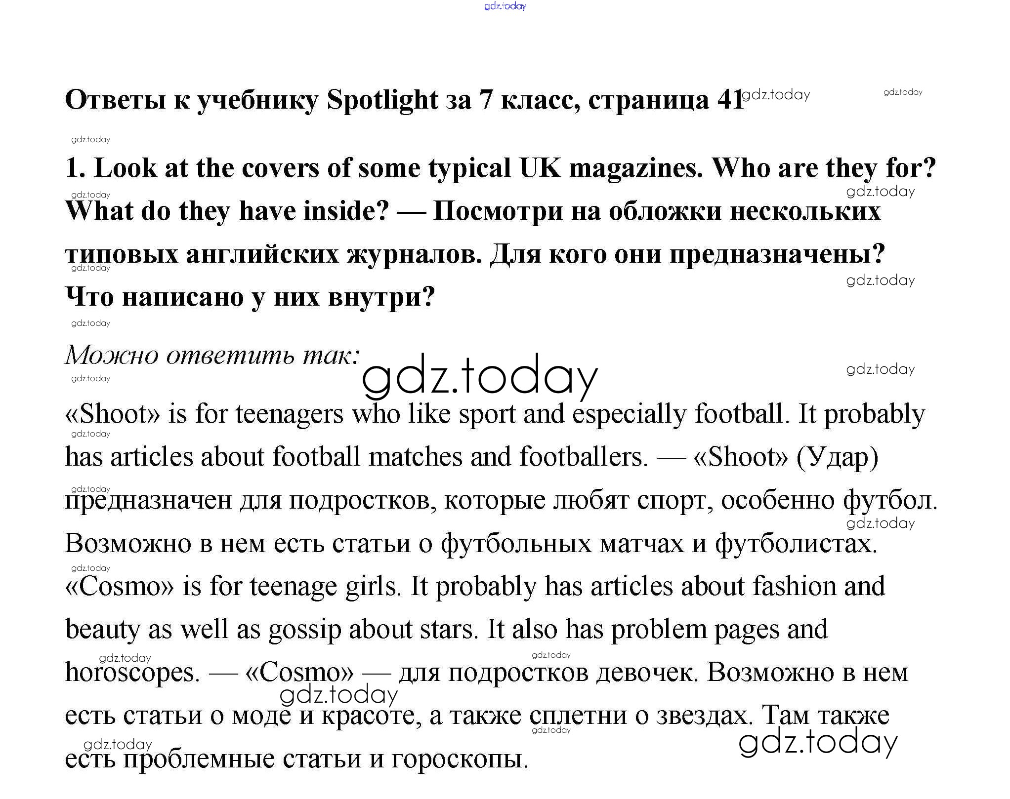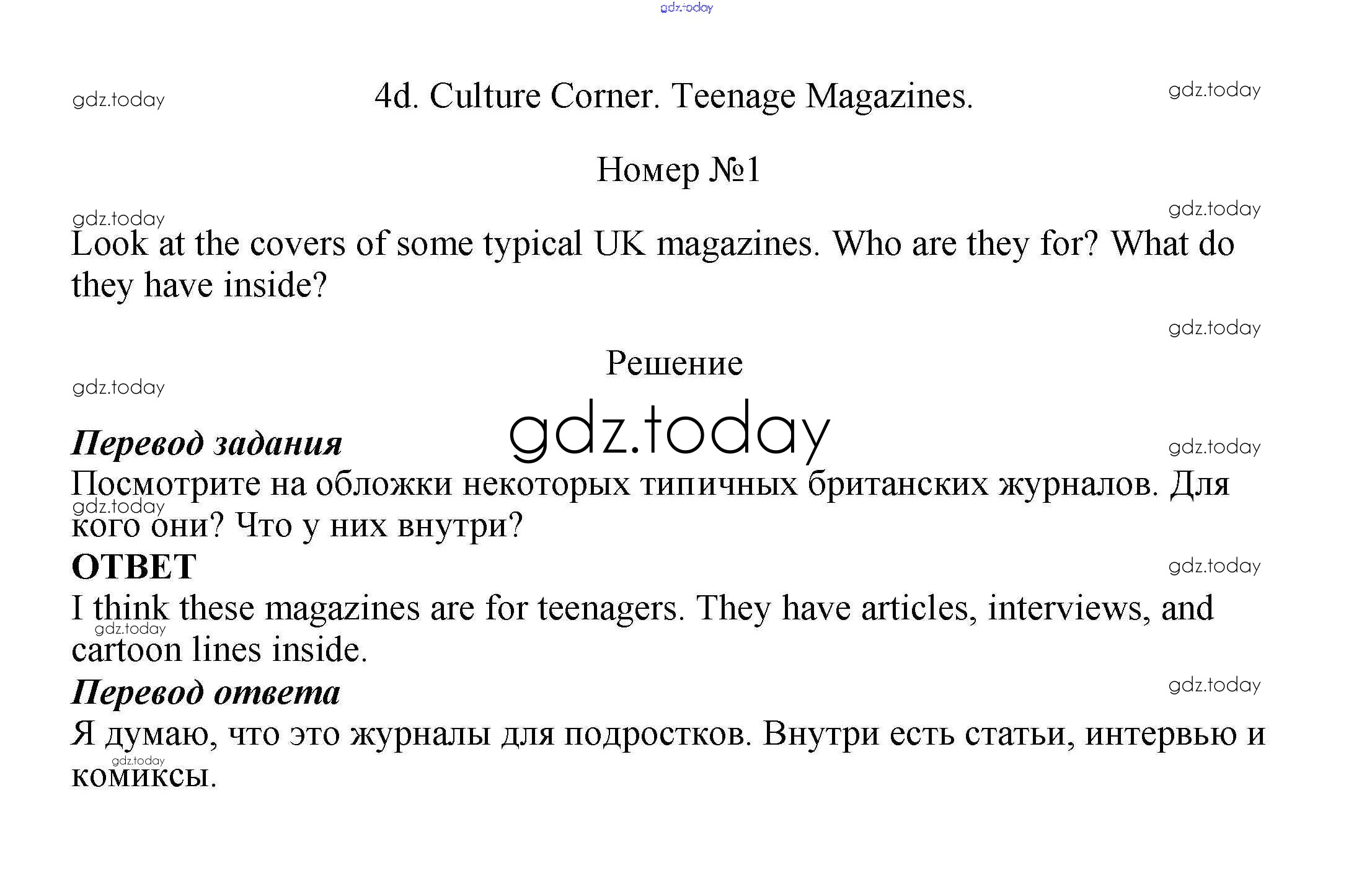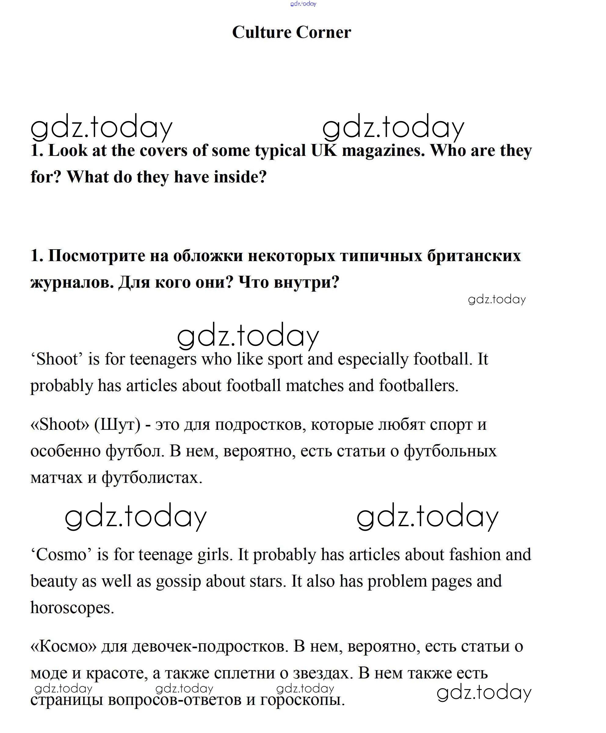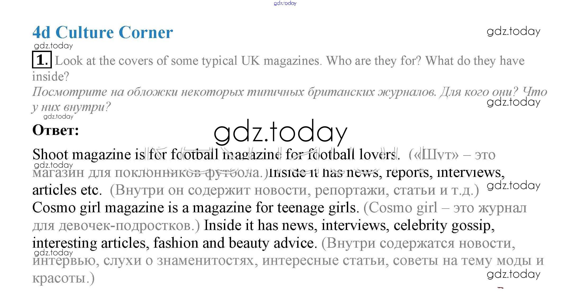 На страницах сайта gdz.today вы найдете учебный и вспомогательный материал, направленный на улучшения знаний школьной программы. ГДЗ - онлайн мир знаний Часть 4d. Culture Corner Модуль 4 1 Учебнику по Английскому языку для 7 класса Ваулина, Дули Просвещение Spotlight 2019