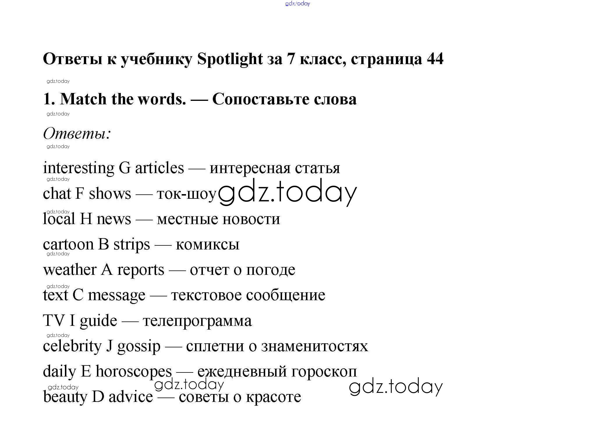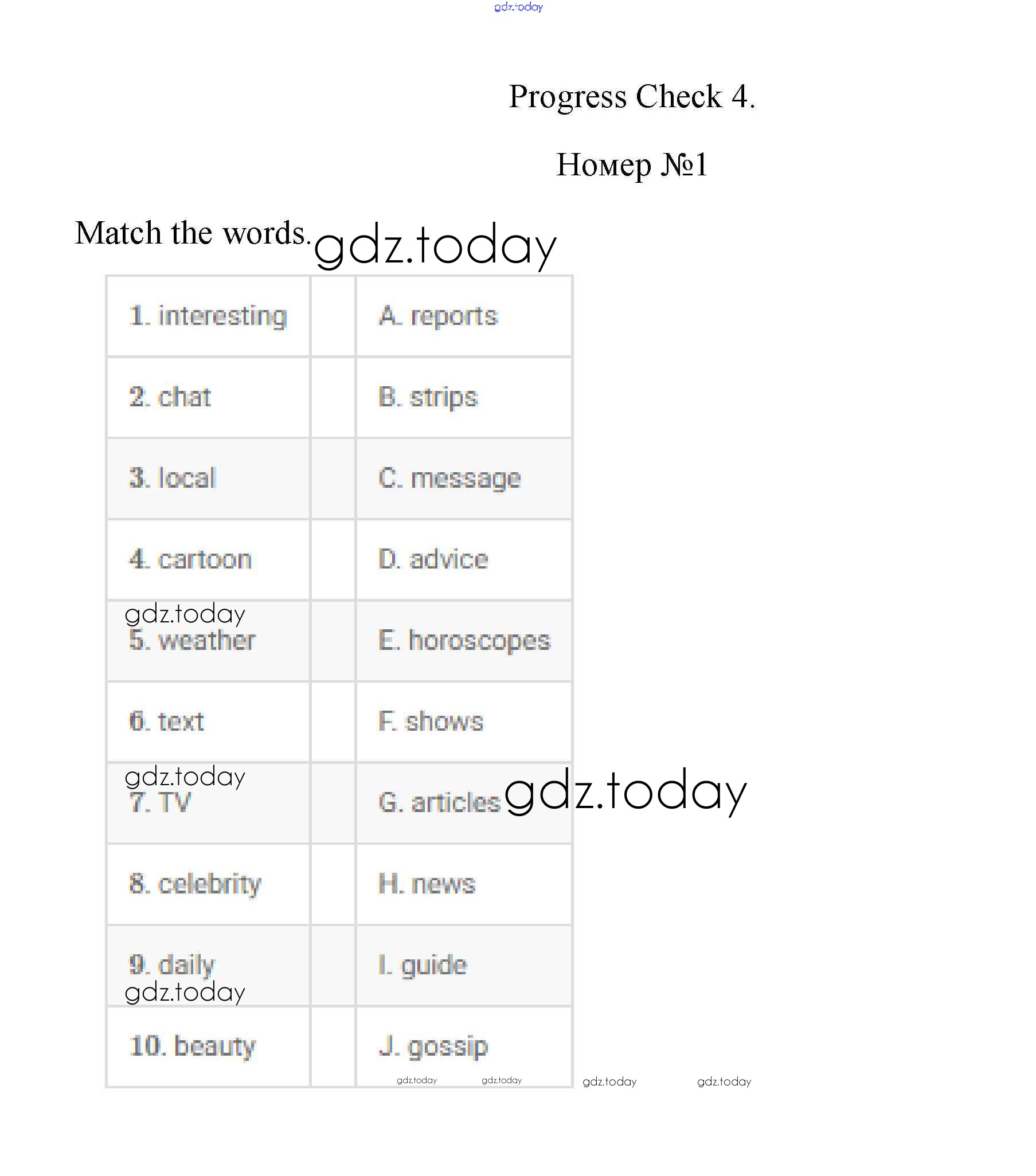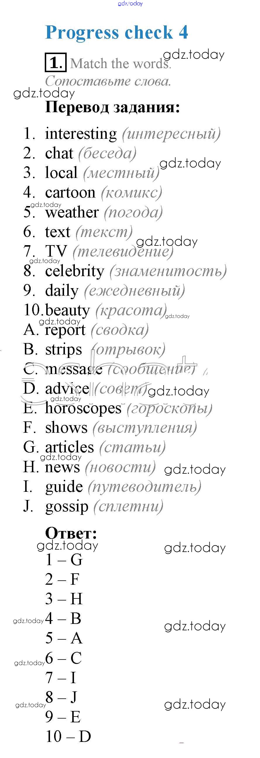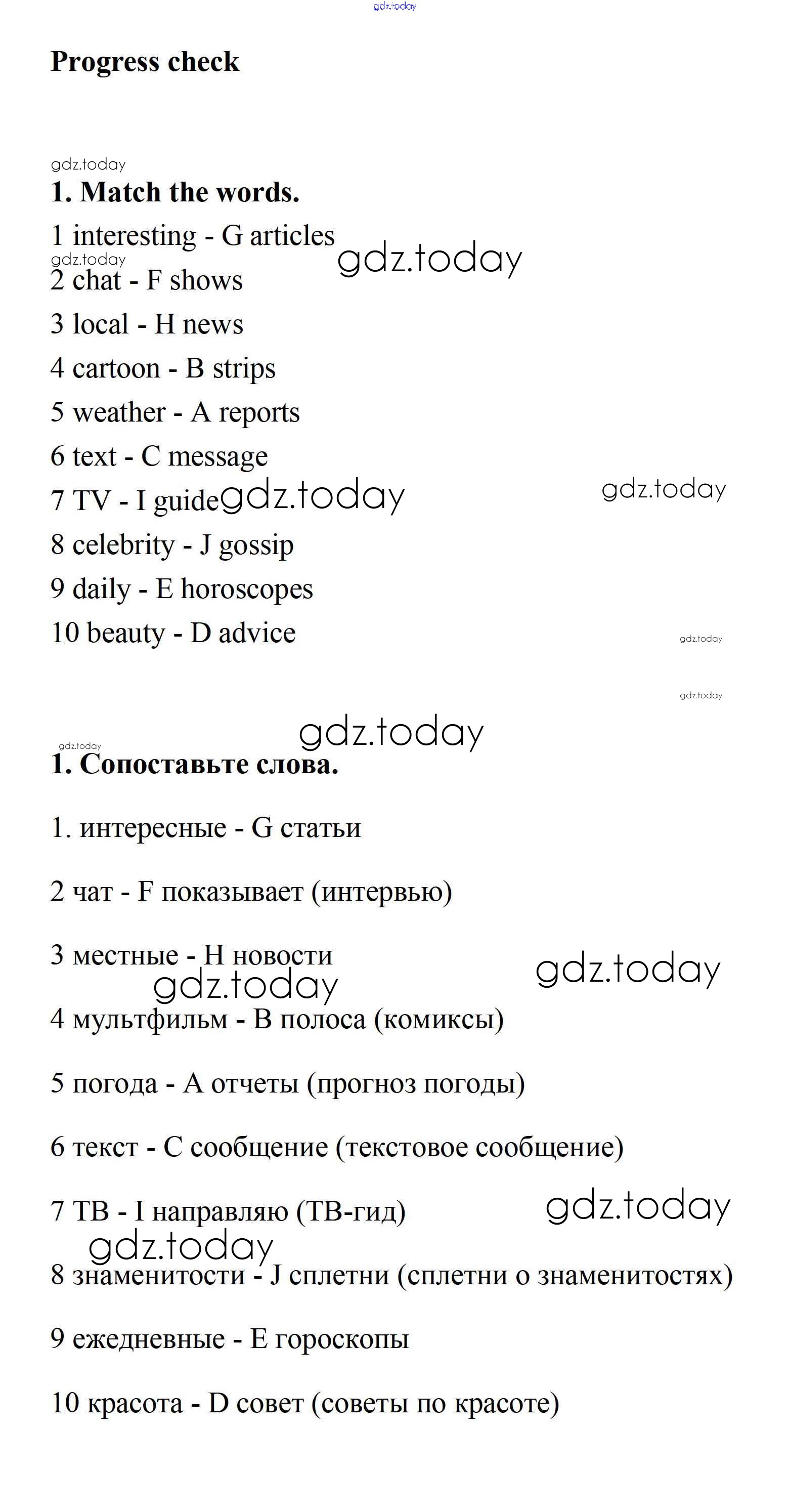 На страницах сайта gdz.today вы найдете учебный и вспомогательный материал, направленный на улучшения знаний школьной программы. ГДЗ - онлайн мир знаний Progress Check Модуль 4 1 Учебнику по Английскому языку для 7 класса Ваулина, Дули Просвещение Spotlight 2019