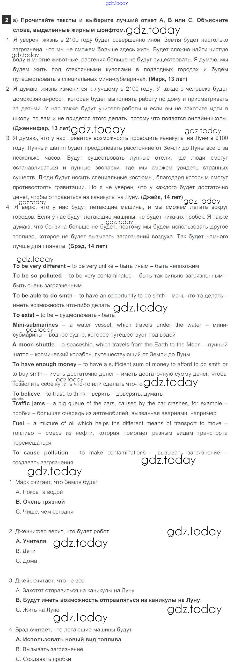 На страницах сайта gdz.today вы найдете учебный и вспомогательный материал, направленный на улучшения знаний школьной программы. ГДЗ - онлайн мир знаний Часть 5a Модуль 5 2 Учебнику по Английскому языку для 7 класса Ваулина, Дули Просвещение Spotlight 2019