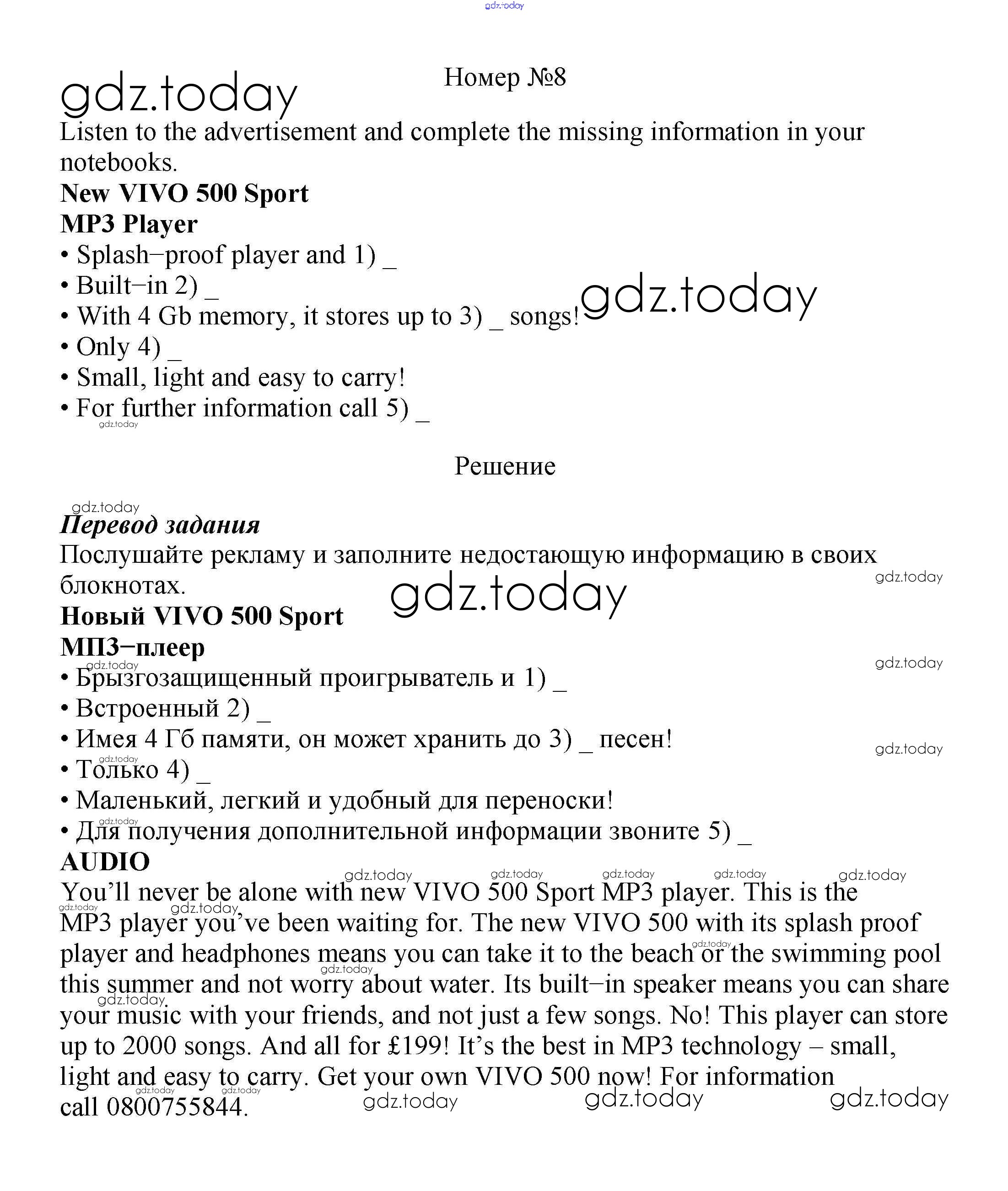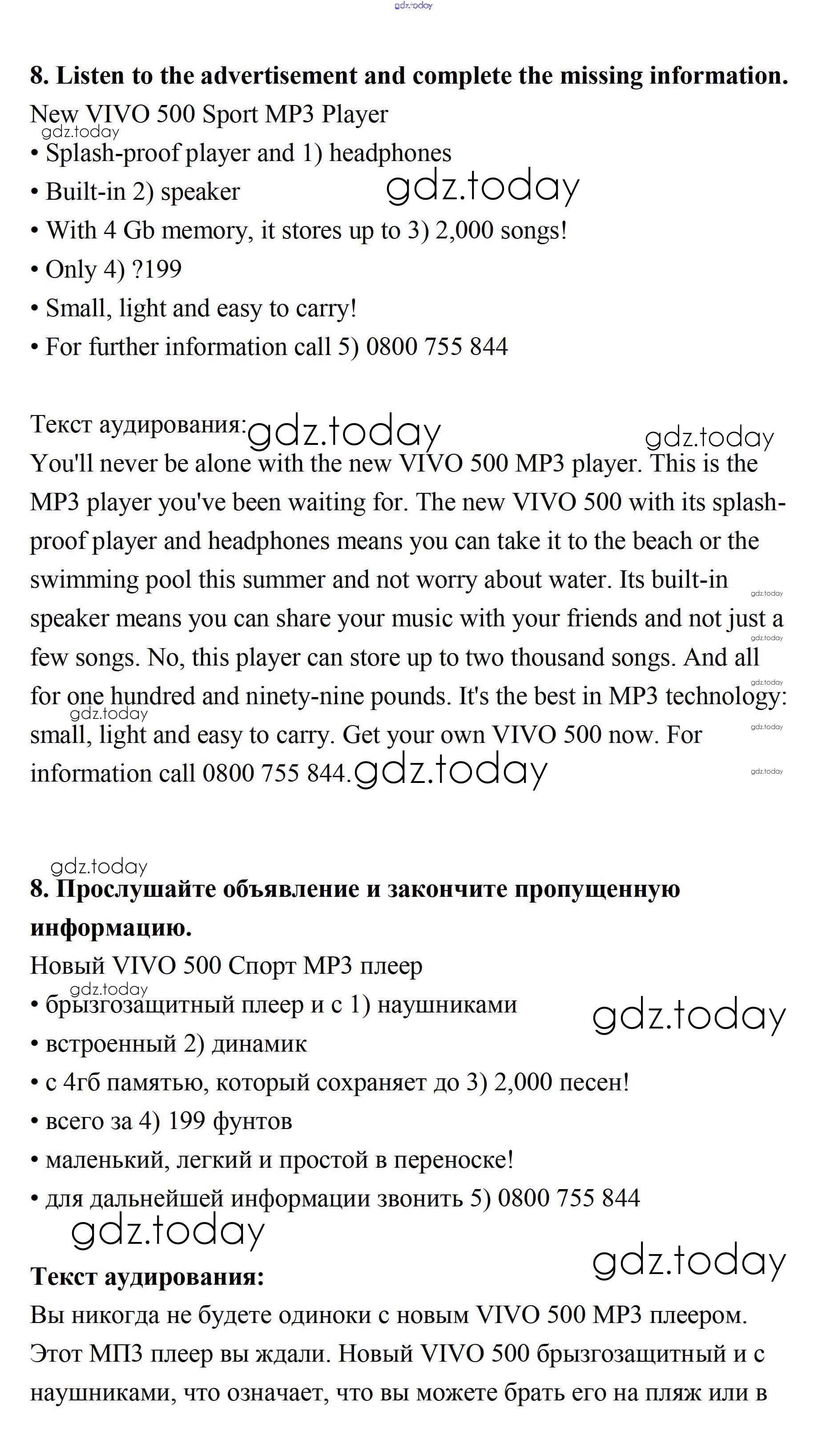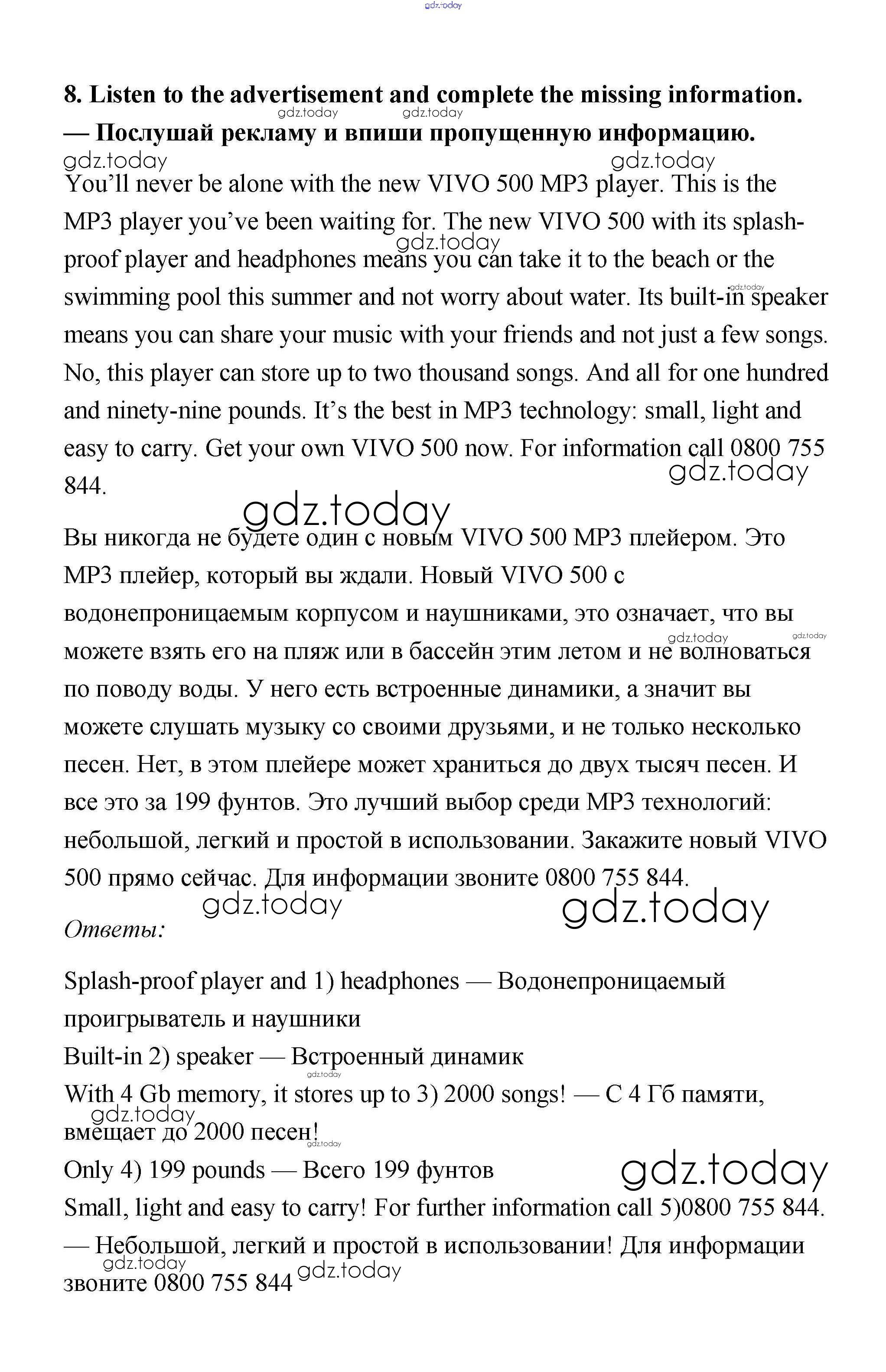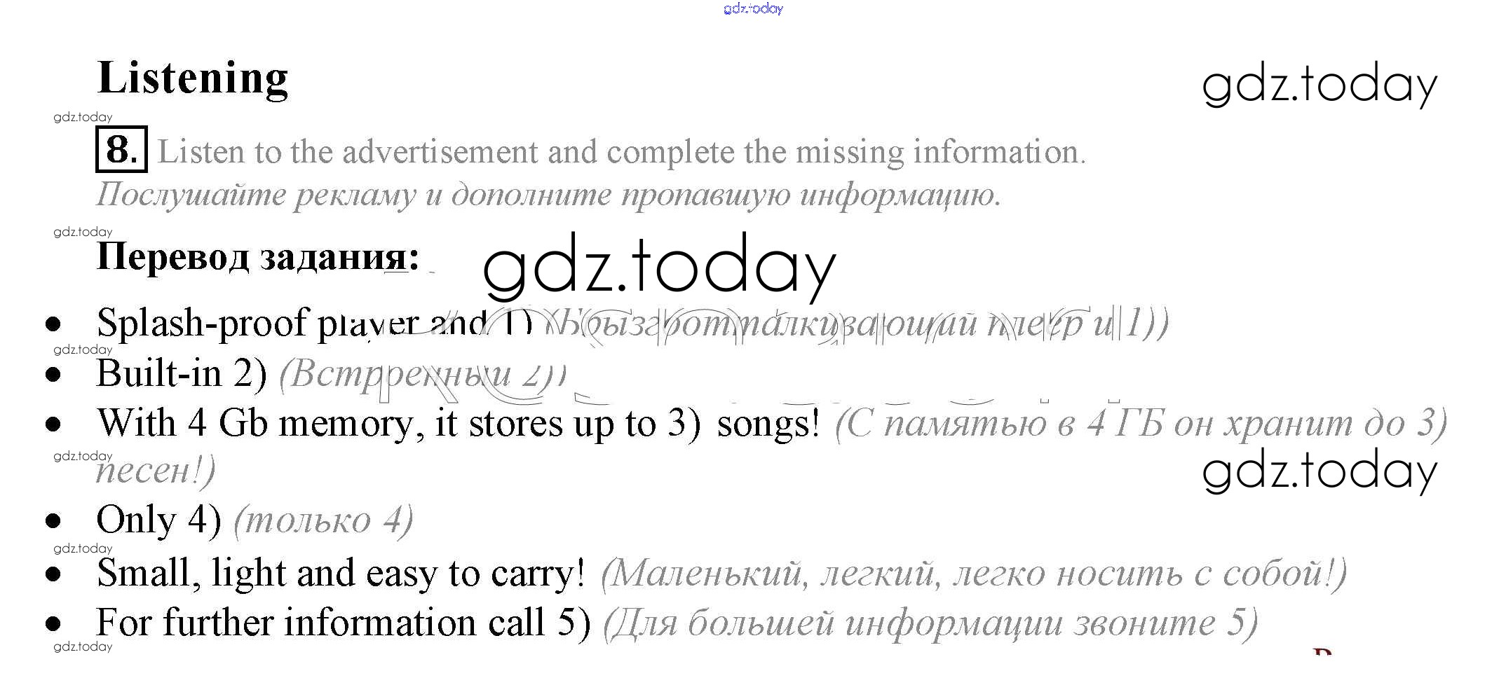 На страницах сайта gdz.today вы найдете учебный и вспомогательный материал, направленный на улучшения знаний школьной программы. ГДЗ - онлайн мир знаний Часть 5b Модуль 5 8 Учебнику по Английскому языку для 7 класса Ваулина, Дули Просвещение Spotlight 2019