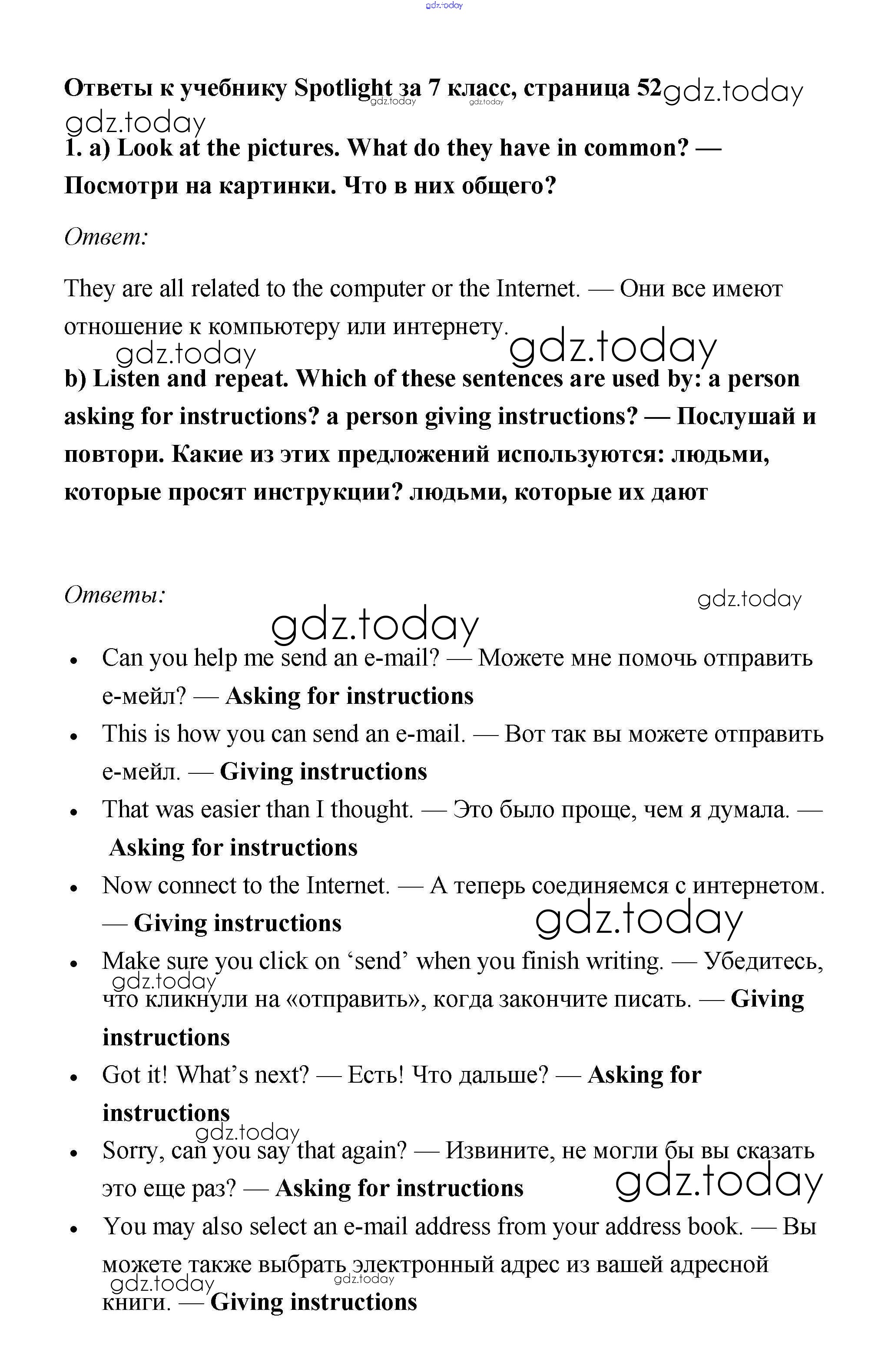 На страницах сайта gdz.today вы найдете учебный и вспомогательный материал, направленный на улучшения знаний школьной программы. ГДЗ - онлайн мир знаний English in use Модуль 5 1 Учебнику по Английскому языку для 7 класса Ваулина, Дули Просвещение Spotlight 2019