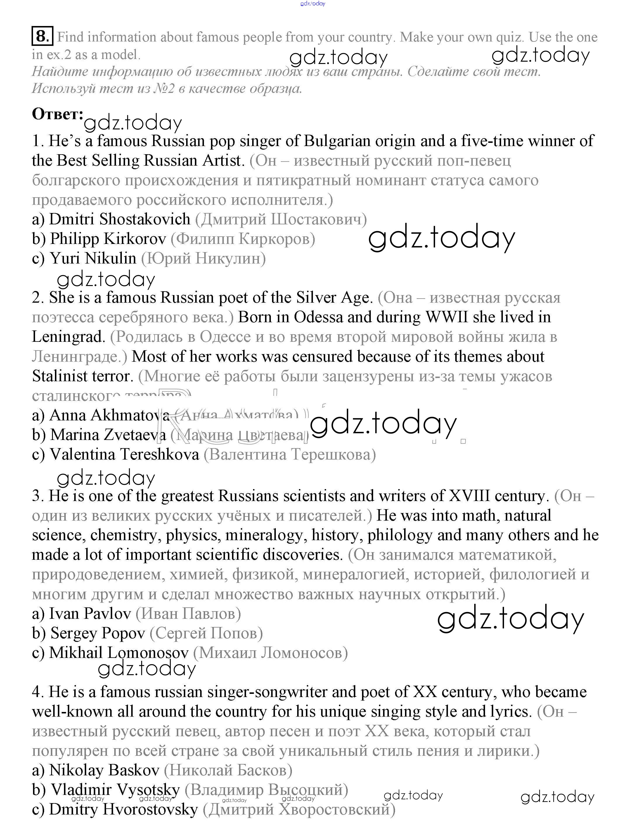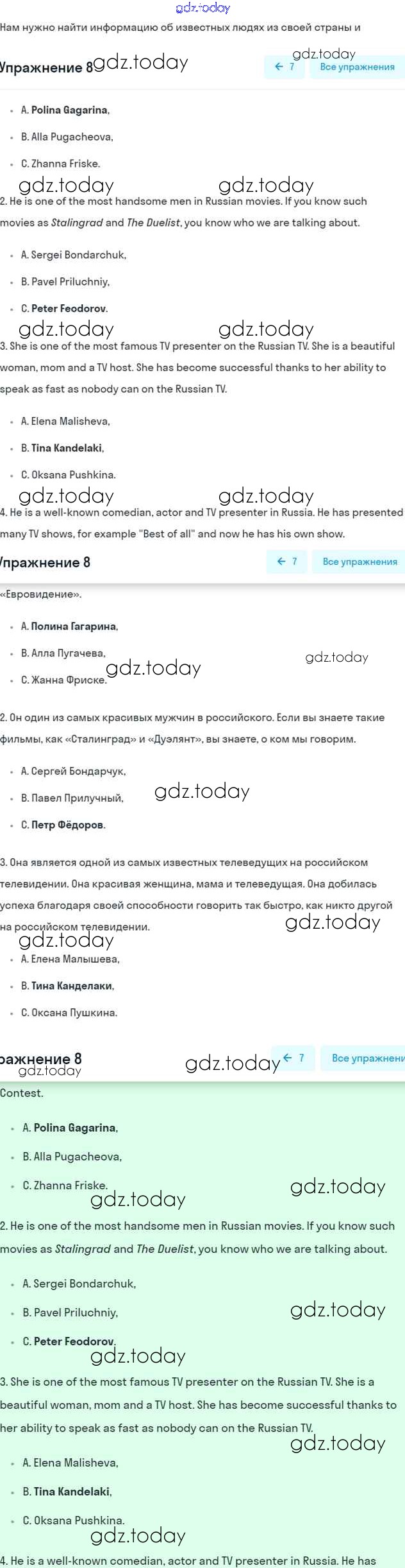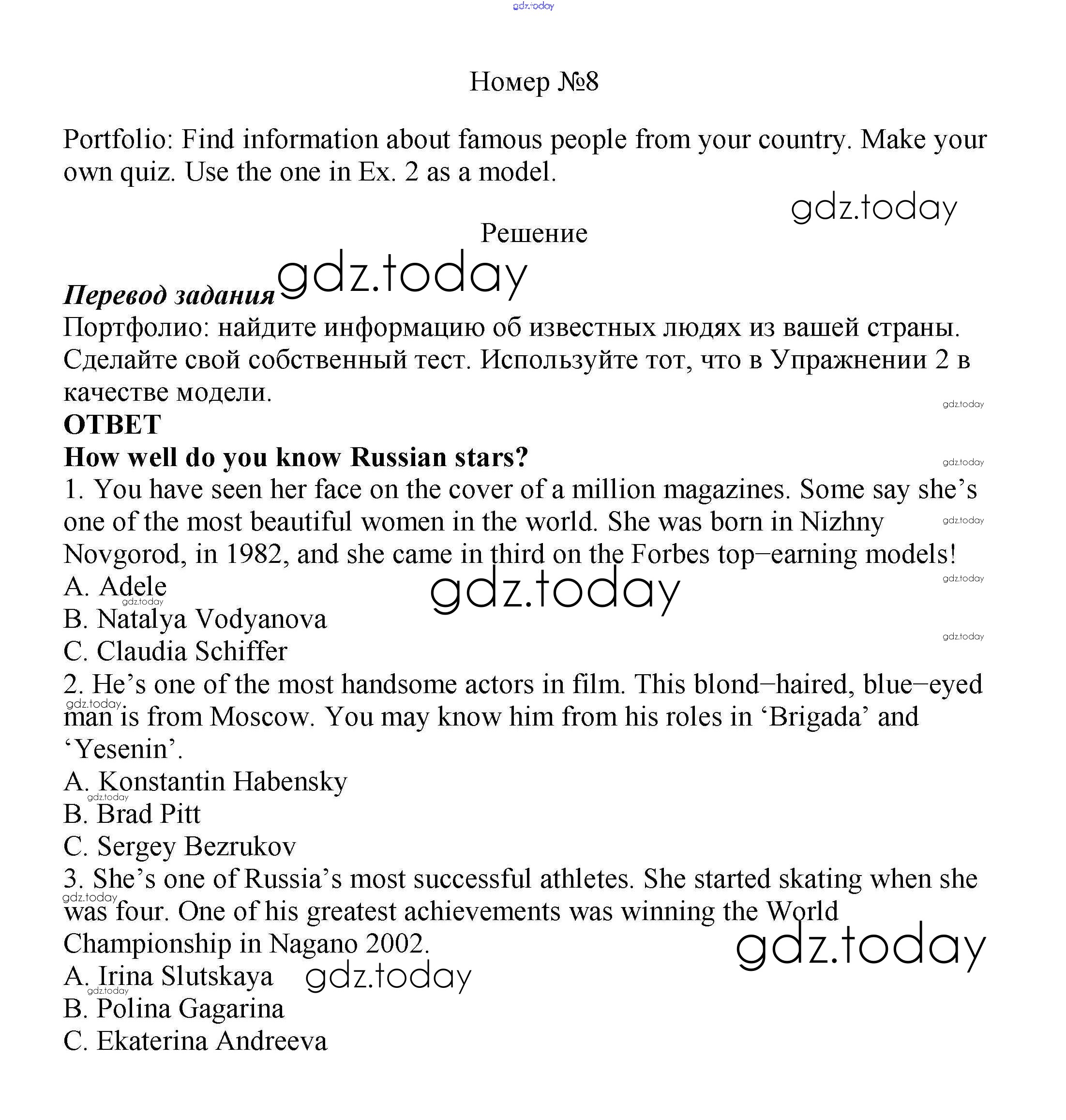 На страницах сайта gdz.today вы найдете учебный и вспомогательный материал, направленный на улучшения знаний школьной программы. ГДЗ - онлайн мир знаний Часть 7a Модуль 7 8 Учебнику по Английскому языку для 7 класса Ваулина, Дули Просвещение Spotlight 2019