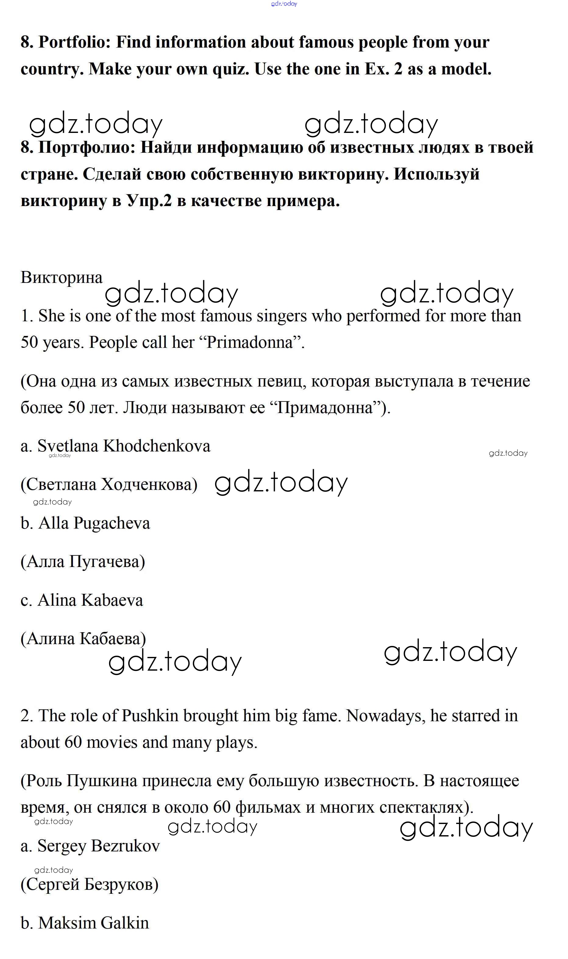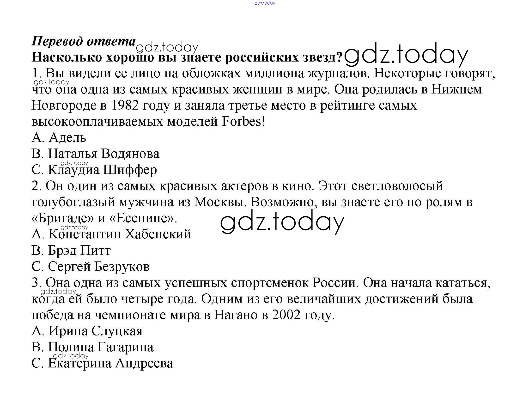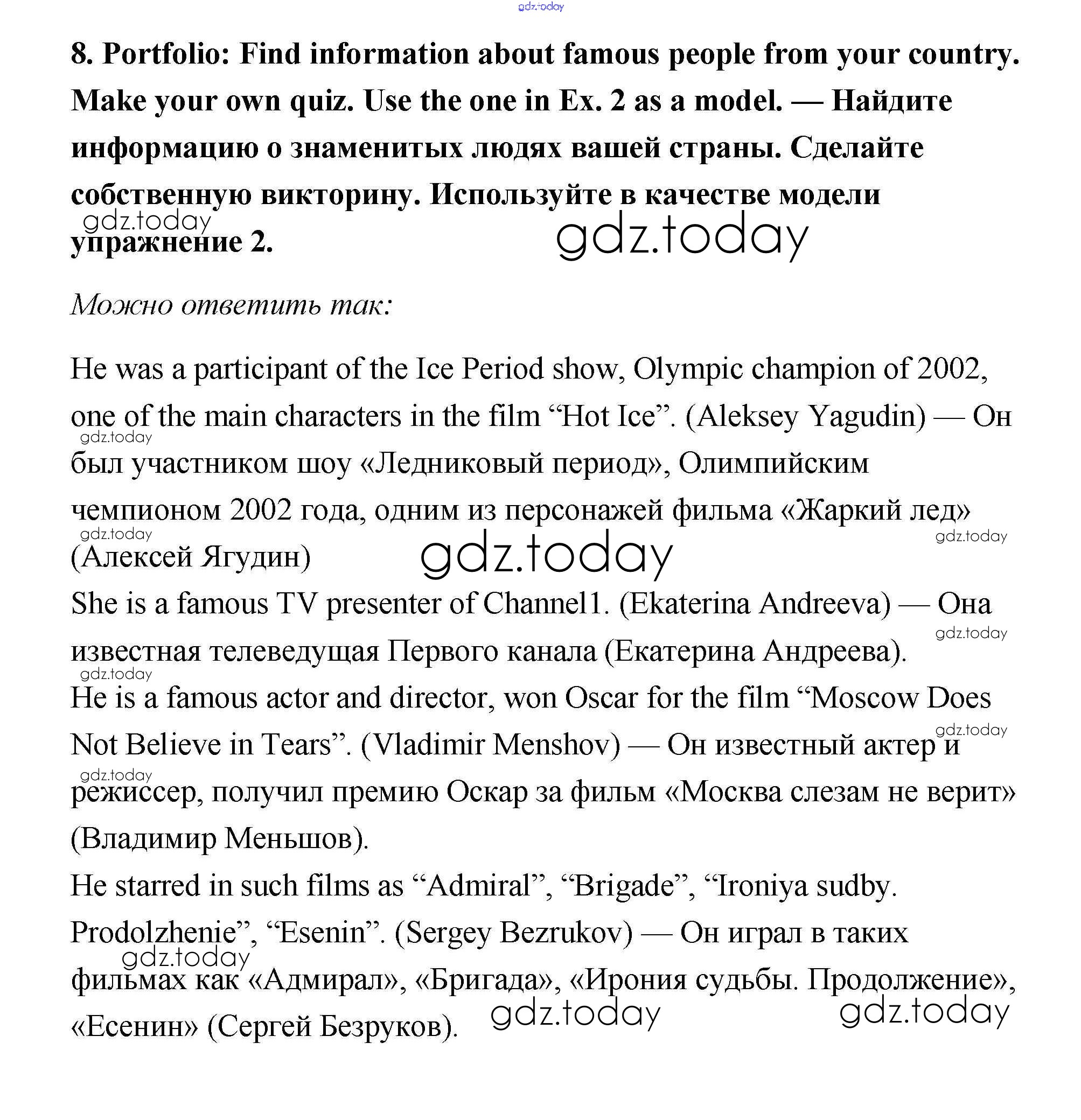 На страницах сайта gdz.today вы найдете учебный и вспомогательный материал, направленный на улучшения знаний школьной программы. ГДЗ - онлайн мир знаний Часть 7a Модуль 7 8 Учебнику по Английскому языку для 7 класса Ваулина, Дули Просвещение Spotlight 2019