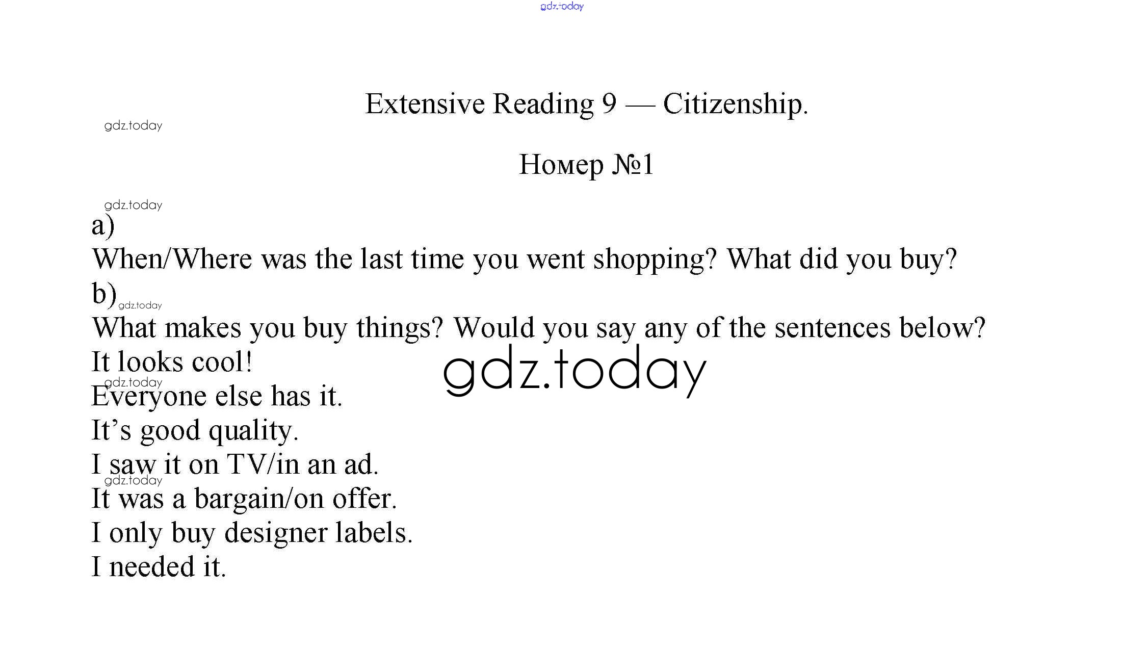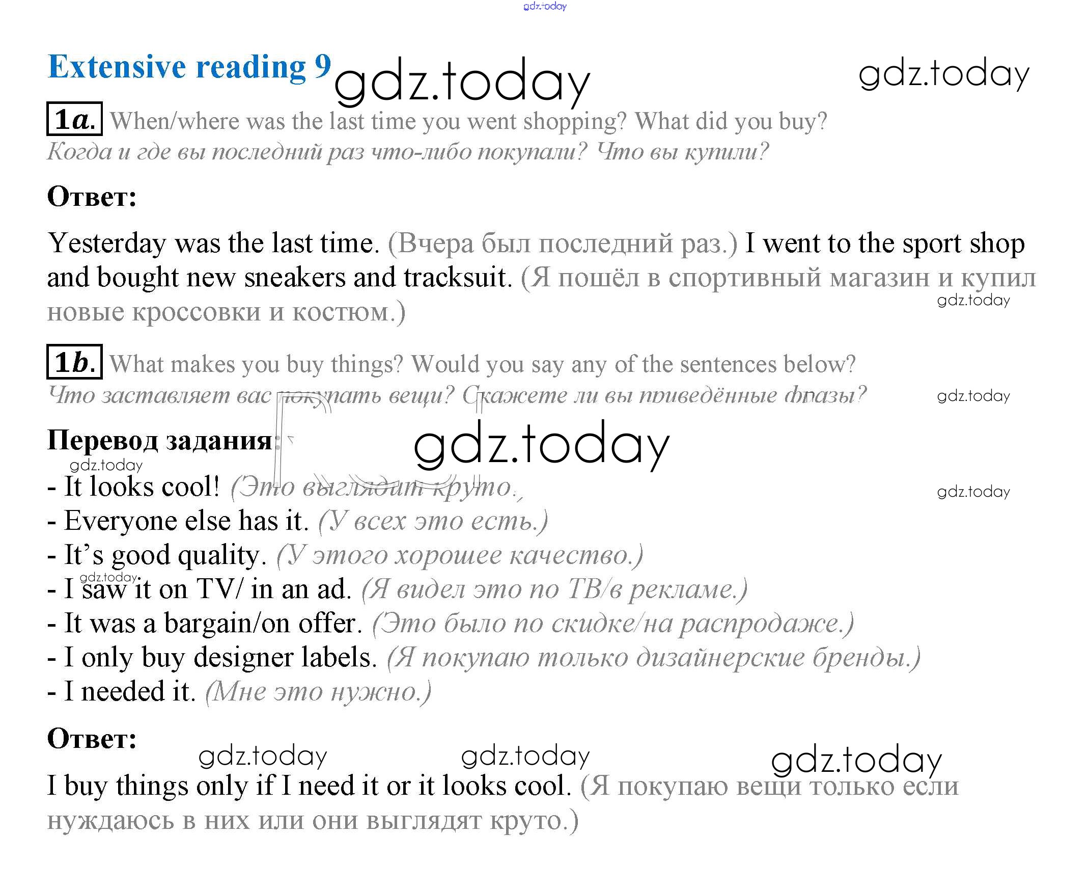 На страницах сайта gdz.today вы найдете учебный и вспомогательный материал, направленный на улучшения знаний школьной программы. ГДЗ - онлайн мир знаний Extensive Reading Модуль 9 1 Учебнику по Английскому языку для 7 класса Ваулина, Дули Просвещение Spotlight 2019