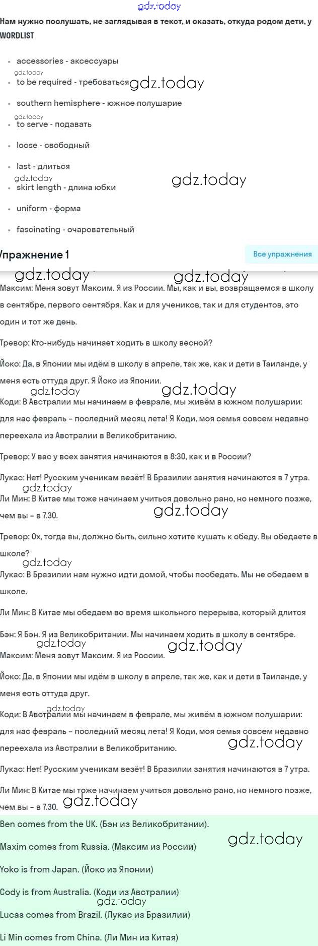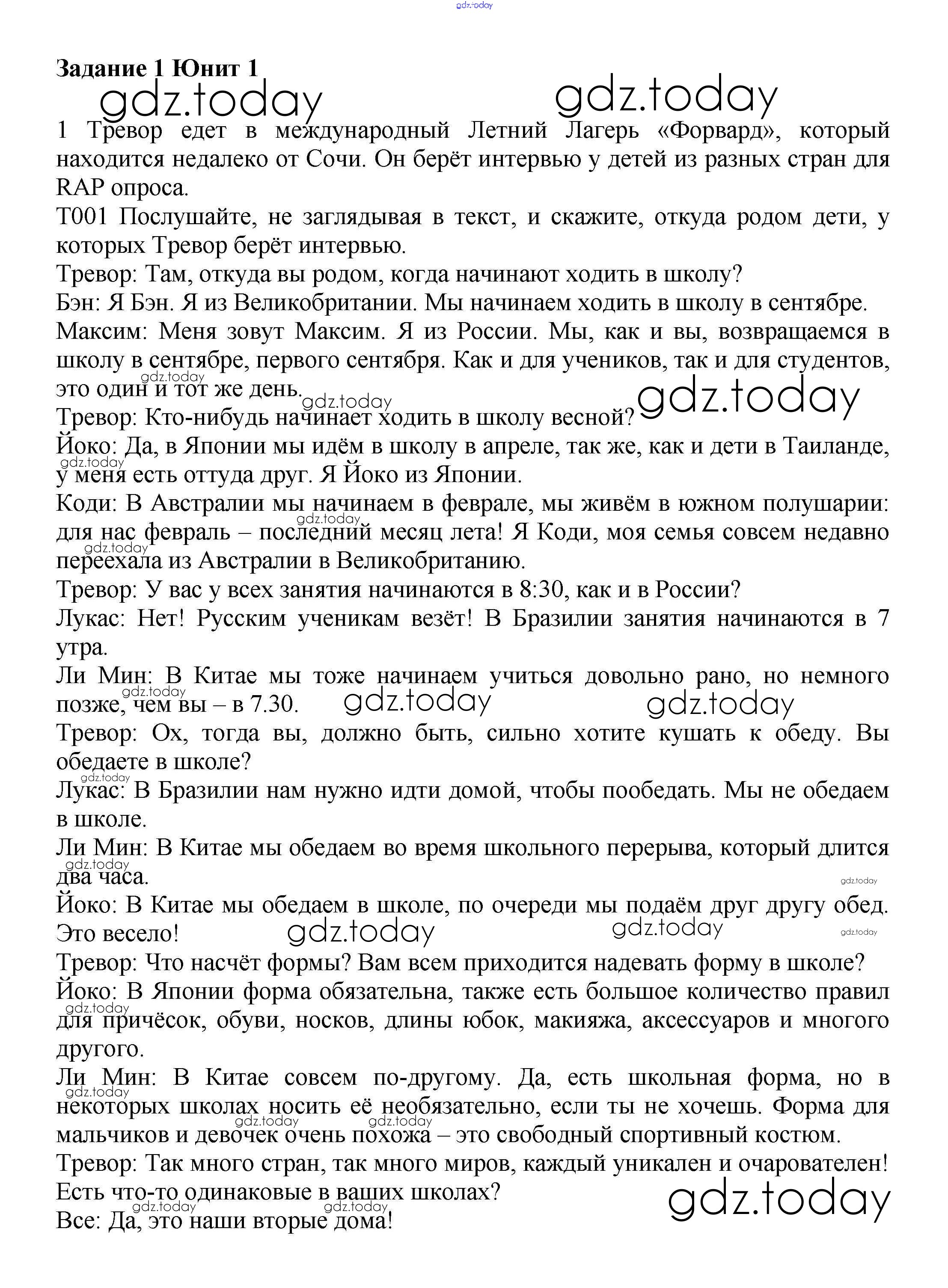На страницах сайта gdz.today вы найдете учебный и вспомогательный материал, направленный на улучшения знаний школьной программы. ГДЗ - онлайн мир знаний Решение к Unit 1. Comparing schools in different countries Часть 1 1 Учебнику по Английскому языку для 7 класса Вербицкая, Гаярделли Вентана-граф Forward 2017