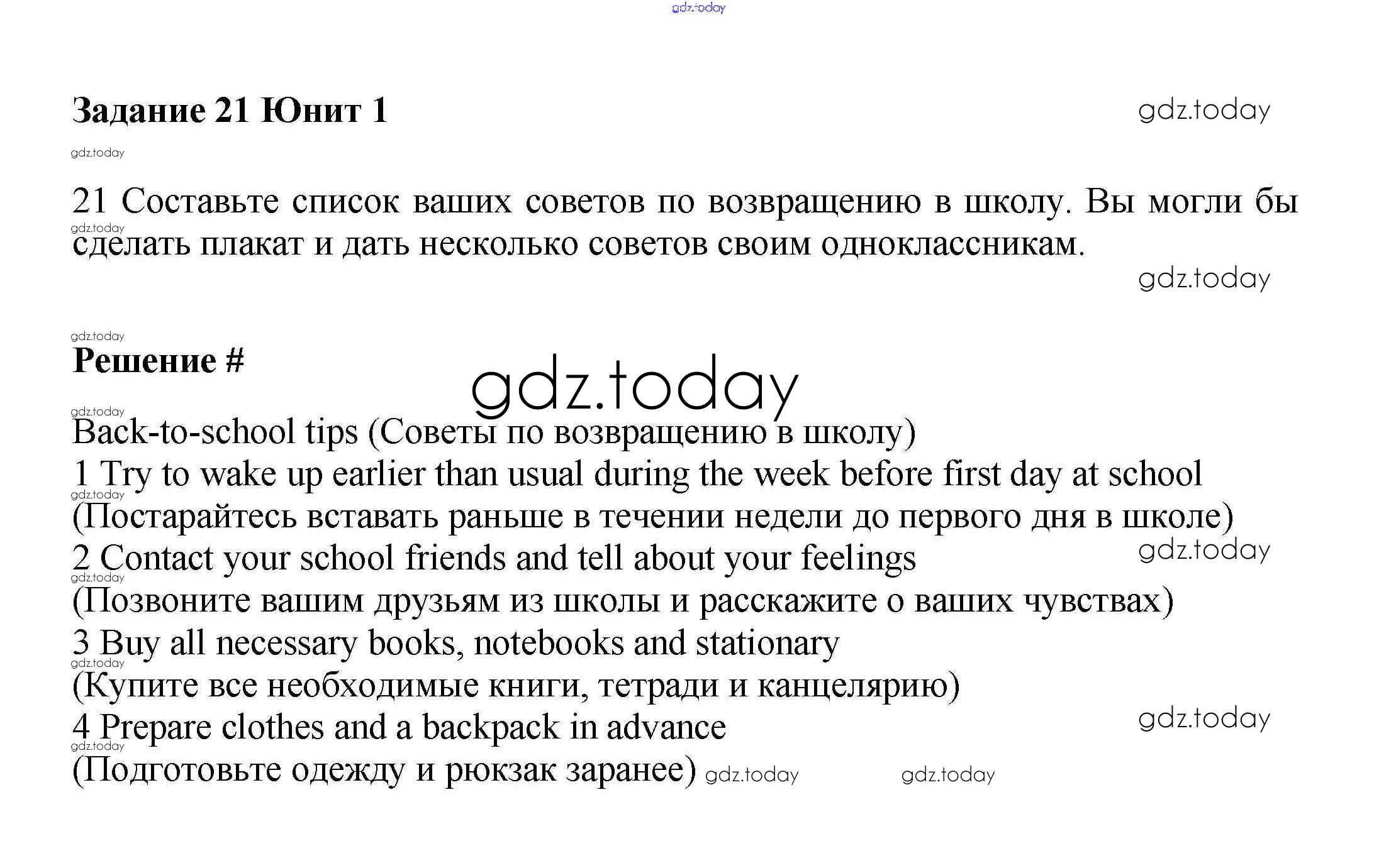 На страницах сайта gdz.today вы найдете учебный и вспомогательный материал, направленный на улучшения знаний школьной программы. ГДЗ - онлайн мир знаний Решение к Unit 1. Comparing schools in different countries Часть 1 21 Учебнику по Английскому языку для 7 класса Вербицкая, Гаярделли Вентана-граф Forward 2017