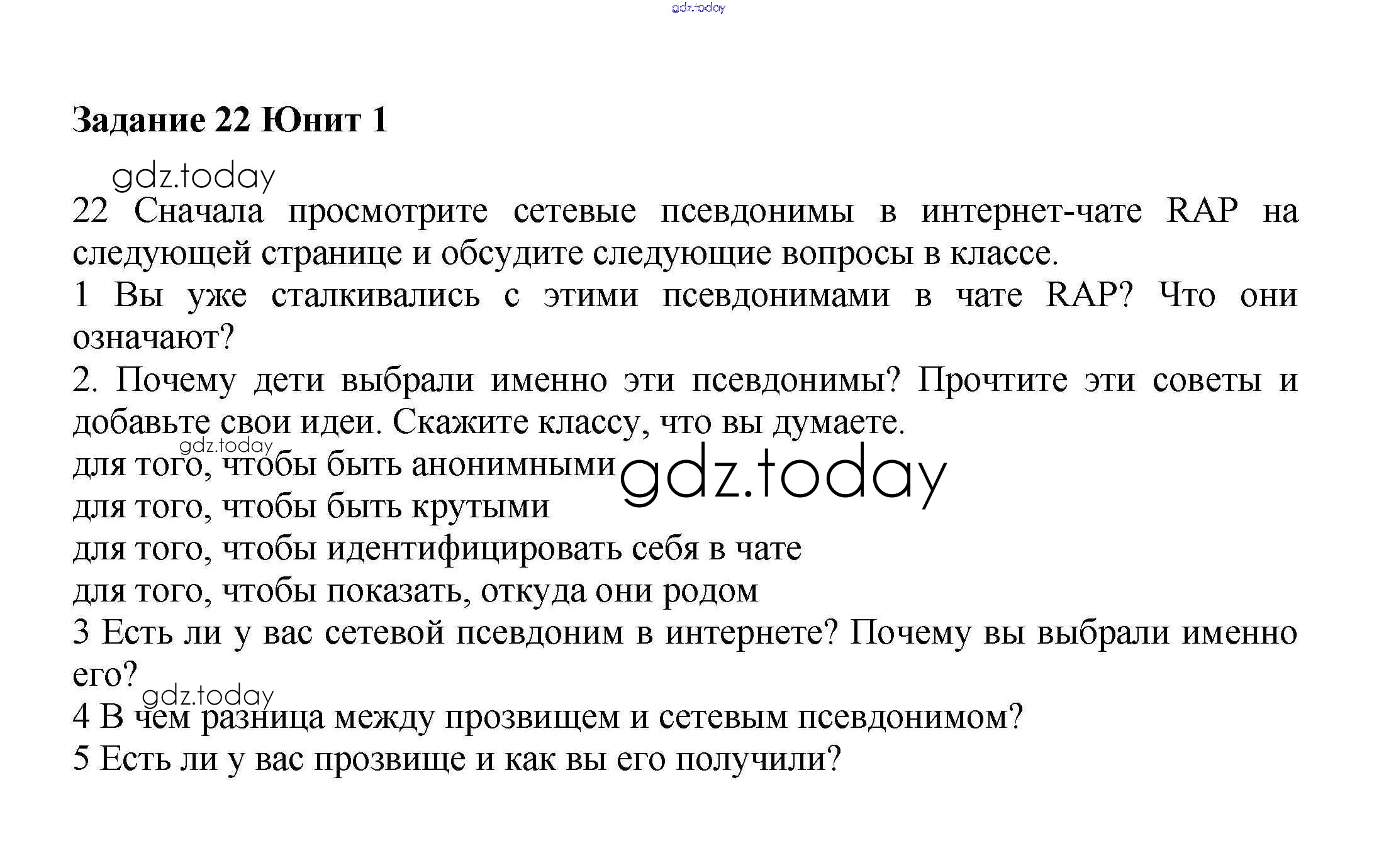 На страницах сайта gdz.today вы найдете учебный и вспомогательный материал, направленный на улучшения знаний школьной программы. ГДЗ - онлайн мир знаний Решение к Unit 1. Comparing schools in different countries Часть 1 22 Учебнику по Английскому языку для 7 класса Вербицкая, Гаярделли Вентана-граф Forward 2017