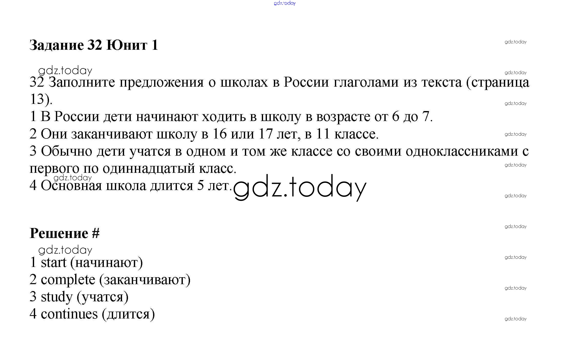 На страницах сайта gdz.today вы найдете учебный и вспомогательный материал, направленный на улучшения знаний школьной программы. ГДЗ - онлайн мир знаний Решение к Unit 1. Comparing schools in different countries Часть 1 32 Учебнику по Английскому языку для 7 класса Вербицкая, Гаярделли Вентана-граф Forward 2017