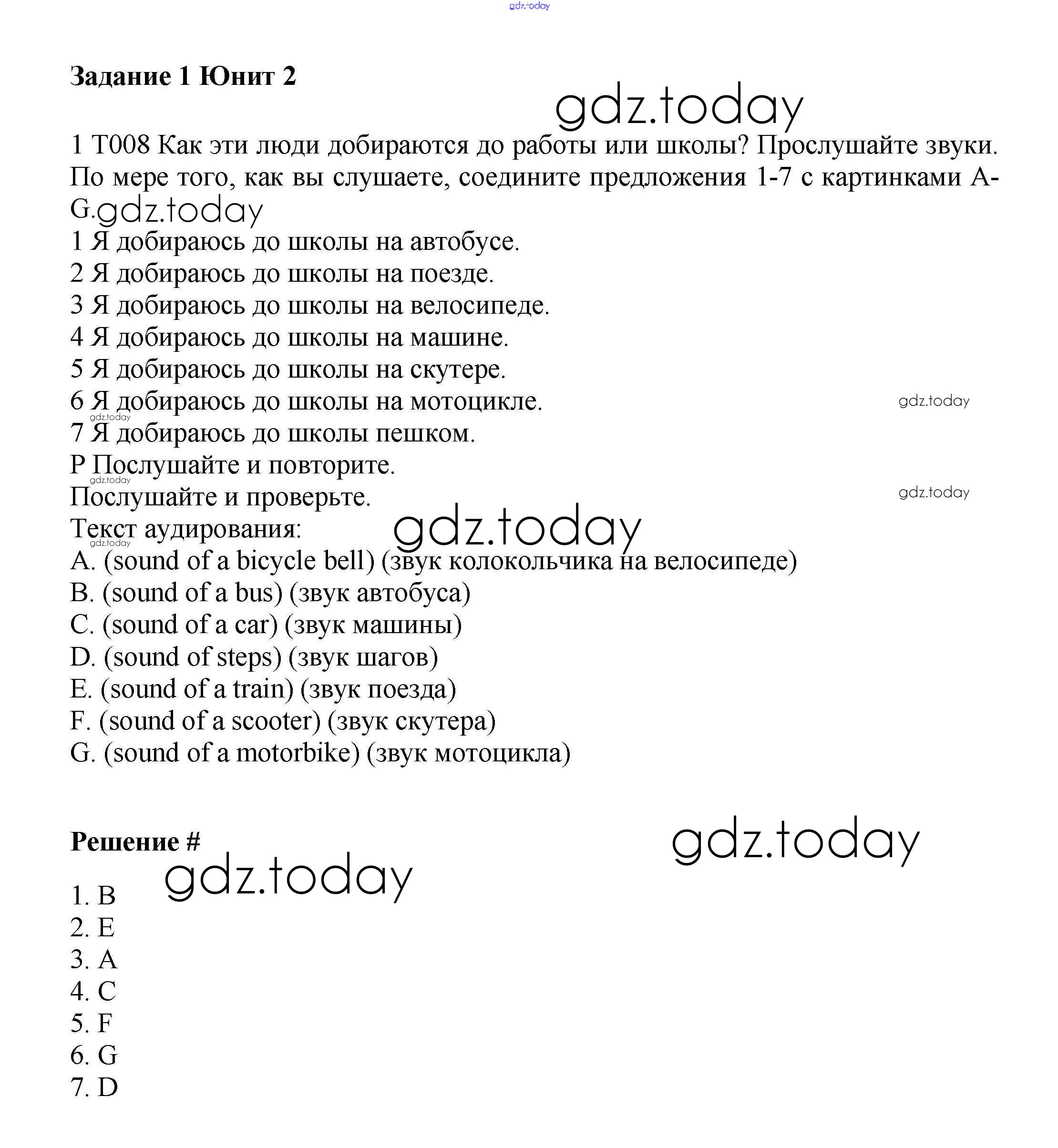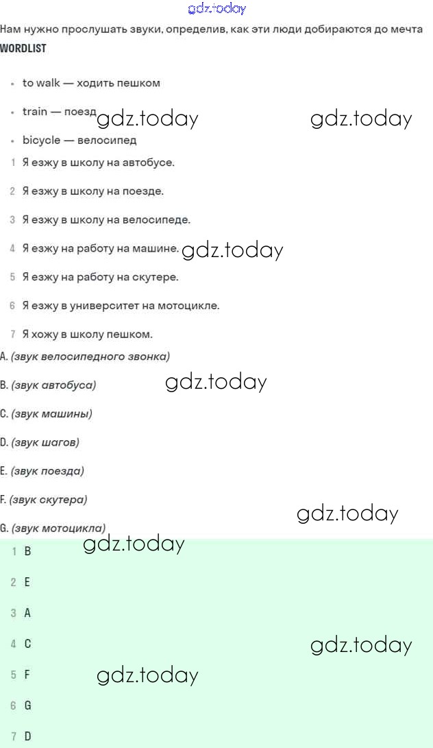 На страницах сайта gdz.today вы найдете учебный и вспомогательный материал, направленный на улучшения знаний школьной программы. ГДЗ - онлайн мир знаний Решение к Unit 2. The best way to get to school Часть 1 1 Учебнику по Английскому языку для 7 класса Вербицкая, Гаярделли Вентана-граф Forward 2017