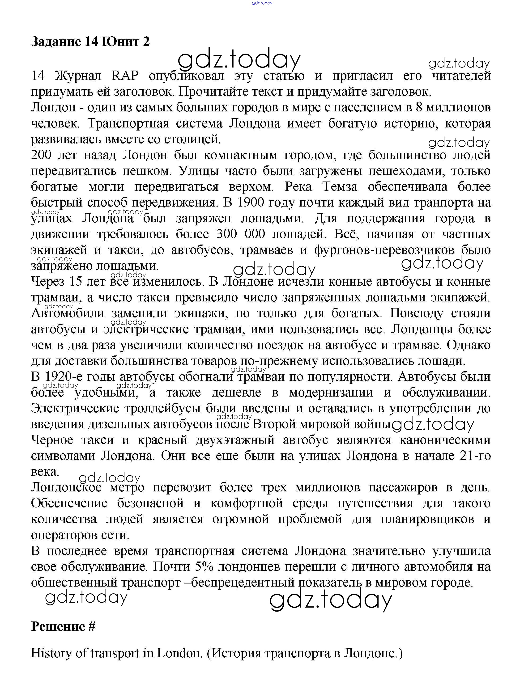 На страницах сайта gdz.today вы найдете учебный и вспомогательный материал, направленный на улучшения знаний школьной программы. ГДЗ - онлайн мир знаний Решение к Unit 2. The best way to get to school Часть 1 14 Учебнику по Английскому языку для 7 класса Вербицкая, Гаярделли Вентана-граф Forward 2017