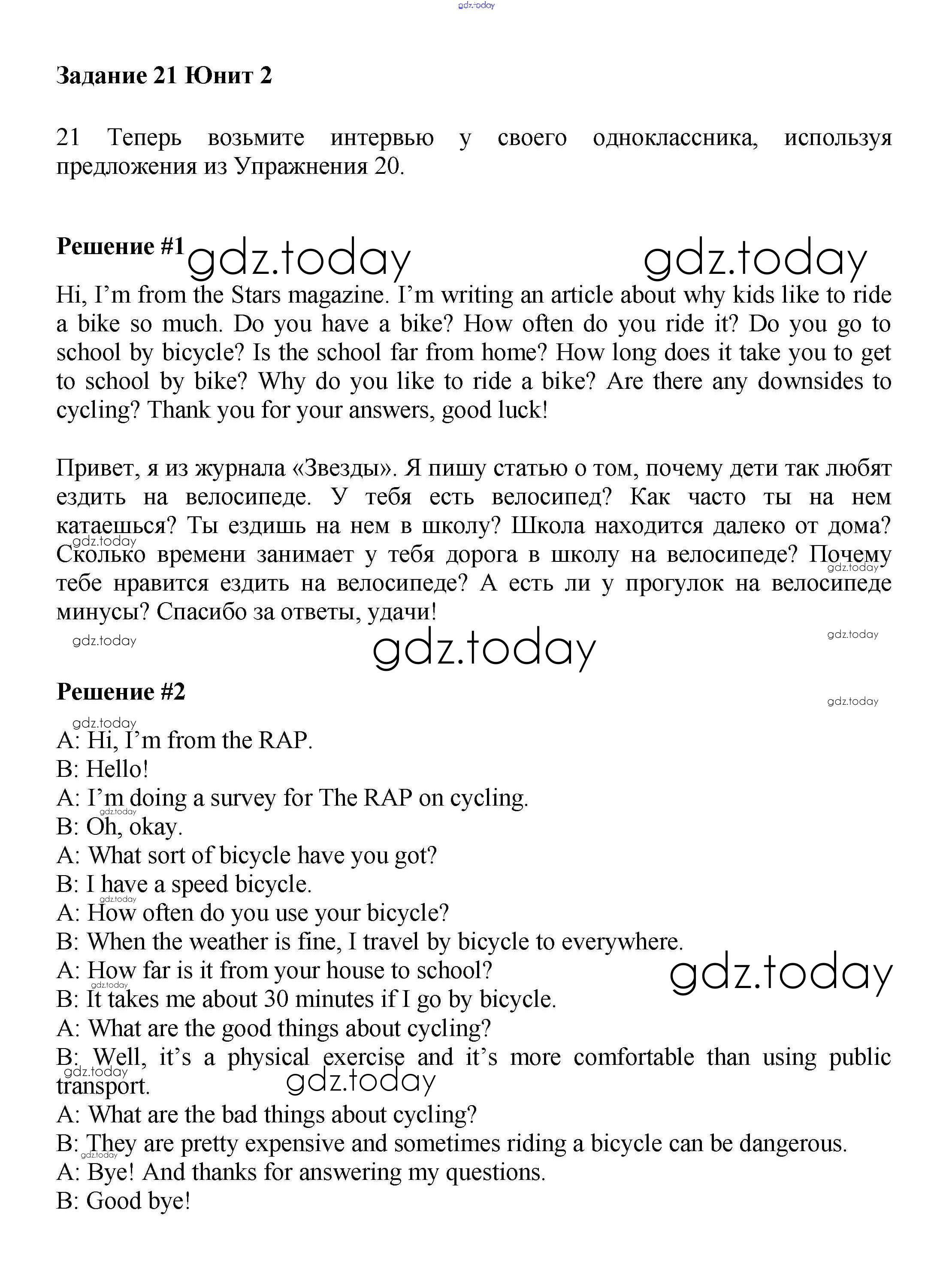 На страницах сайта gdz.today вы найдете учебный и вспомогательный материал, направленный на улучшения знаний школьной программы. ГДЗ - онлайн мир знаний Решение к Unit 2. The best way to get to school Часть 1 21 Учебнику по Английскому языку для 7 класса Вербицкая, Гаярделли Вентана-граф Forward 2017