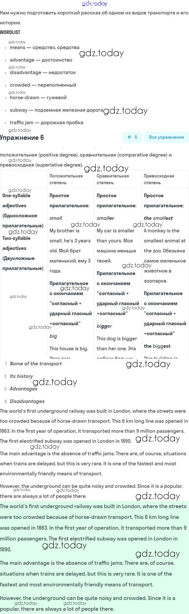 На страницах сайта gdz.today вы найдете учебный и вспомогательный материал, направленный на улучшения знаний школьной программы. ГДЗ - онлайн мир знаний Решение к Unit 2. The best way to get to school Часть 1 6 Учебнику по Английскому языку для 7 класса Вербицкая, Гаярделли Вентана-граф Forward 2017