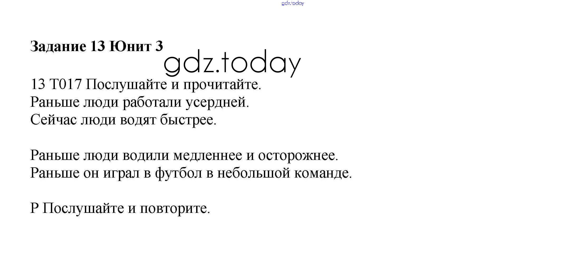 На страницах сайта gdz.today вы найдете учебный и вспомогательный материал, направленный на улучшения знаний школьной программы. ГДЗ - онлайн мир знаний Решение к Unit 3. Talking about old times Часть 1 13 Учебнику по Английскому языку для 7 класса Вербицкая, Гаярделли Вентана-граф Forward 2017