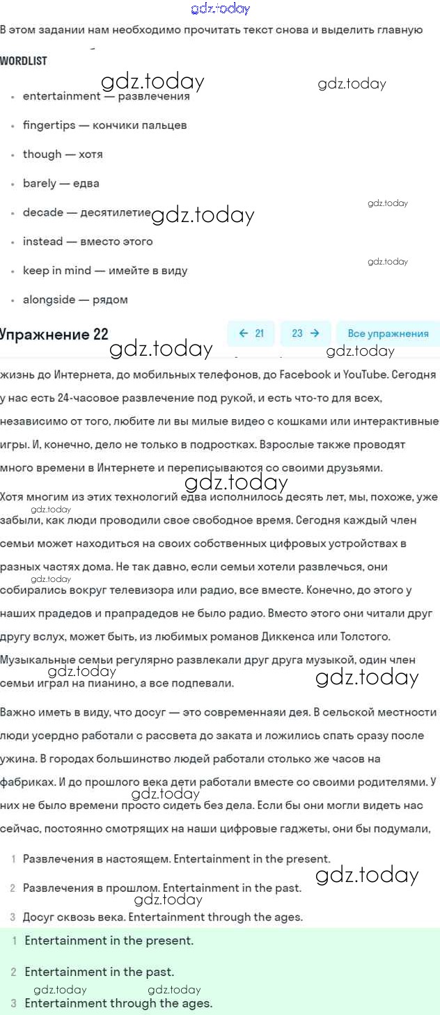 На страницах сайта gdz.today вы найдете учебный и вспомогательный материал, направленный на улучшения знаний школьной программы. ГДЗ - онлайн мир знаний Решение к Unit 3. Talking about old times Часть 1 22 Учебнику по Английскому языку для 7 класса Вербицкая, Гаярделли Вентана-граф Forward 2017