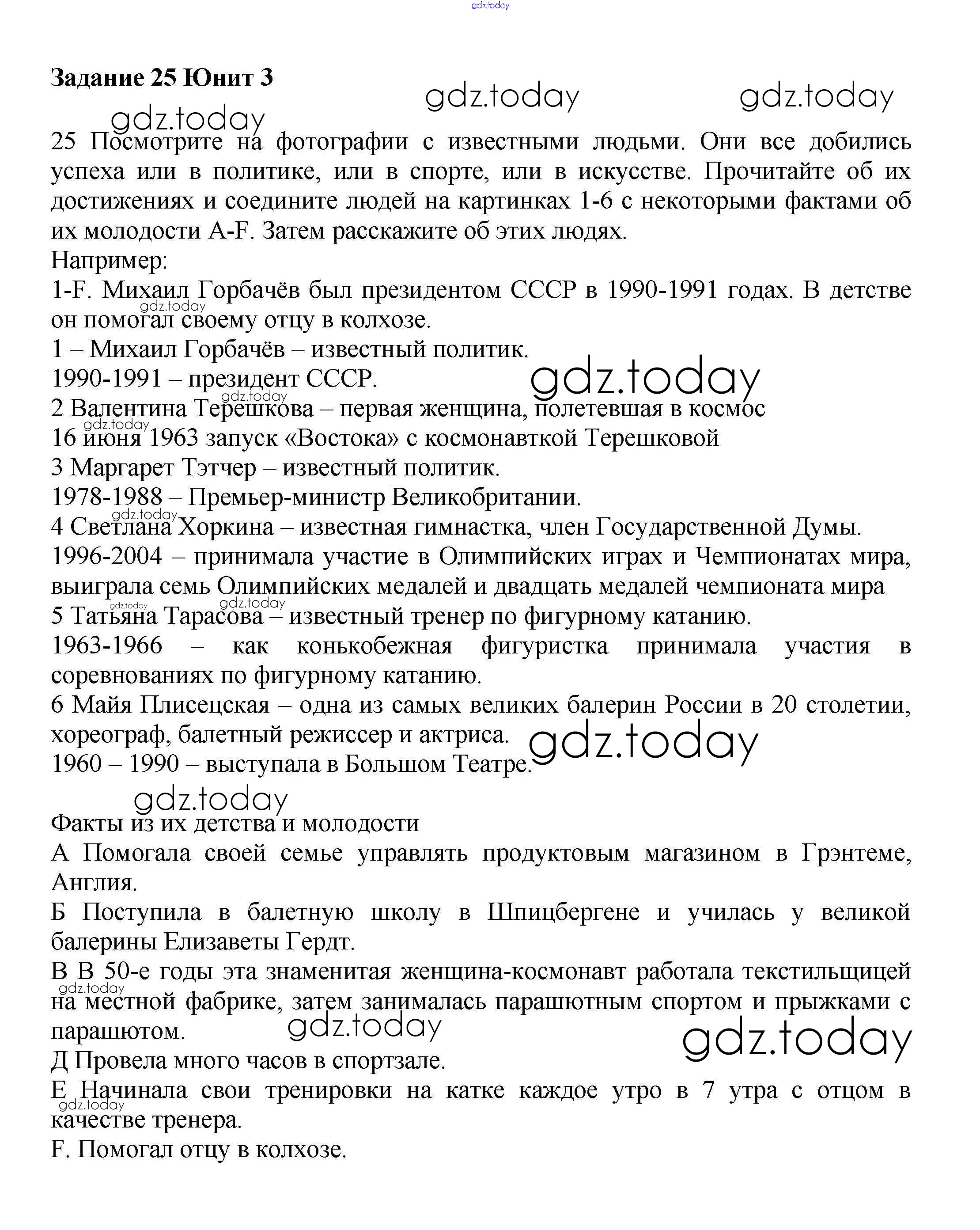 На страницах сайта gdz.today вы найдете учебный и вспомогательный материал, направленный на улучшения знаний школьной программы. ГДЗ - онлайн мир знаний Решение к Unit 3. Talking about old times Часть 1 25 Учебнику по Английскому языку для 7 класса Вербицкая, Гаярделли Вентана-граф Forward 2017