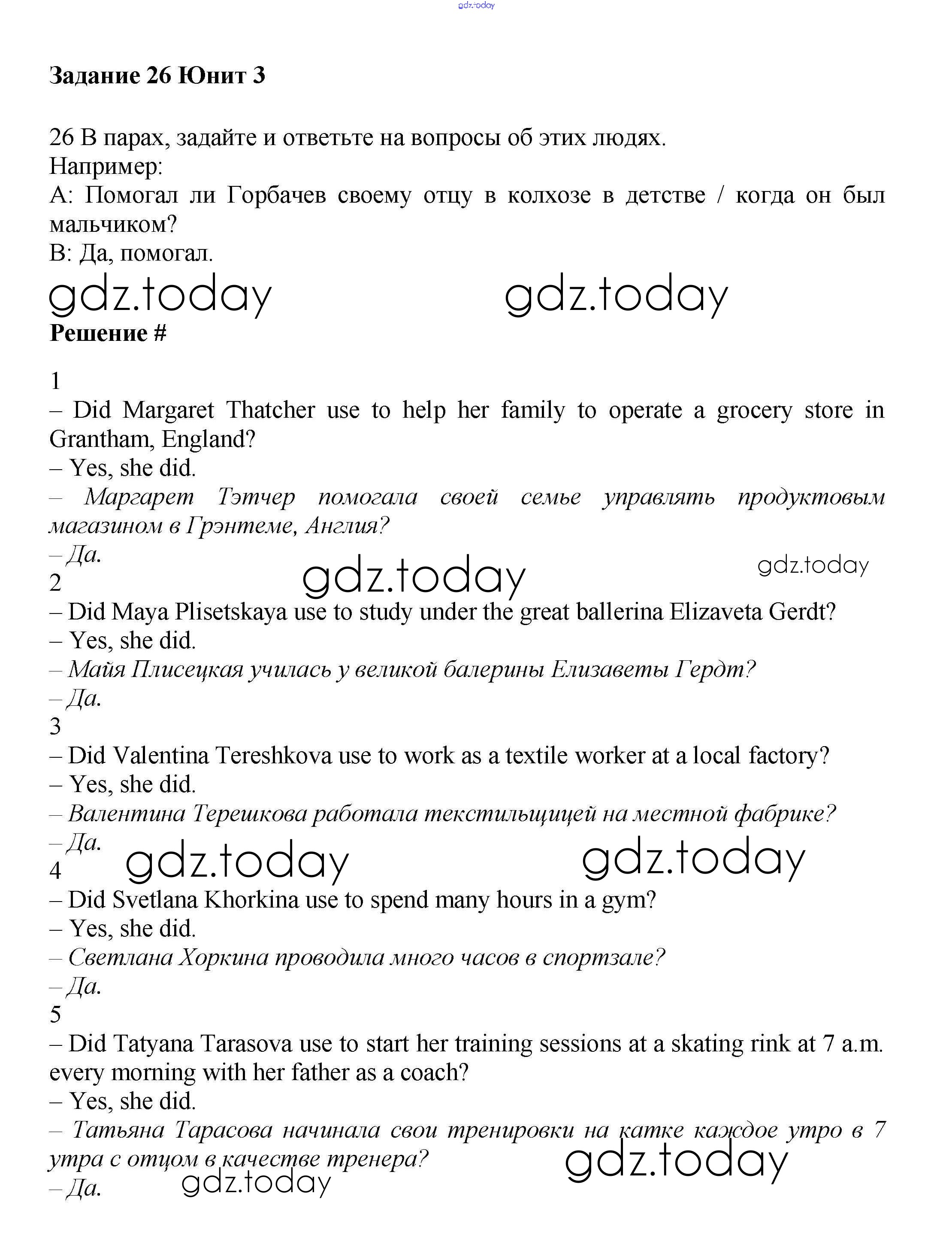 На страницах сайта gdz.today вы найдете учебный и вспомогательный материал, направленный на улучшения знаний школьной программы. ГДЗ - онлайн мир знаний Решение к Unit 3. Talking about old times Часть 1 26 Учебнику по Английскому языку для 7 класса Вербицкая, Гаярделли Вентана-граф Forward 2017