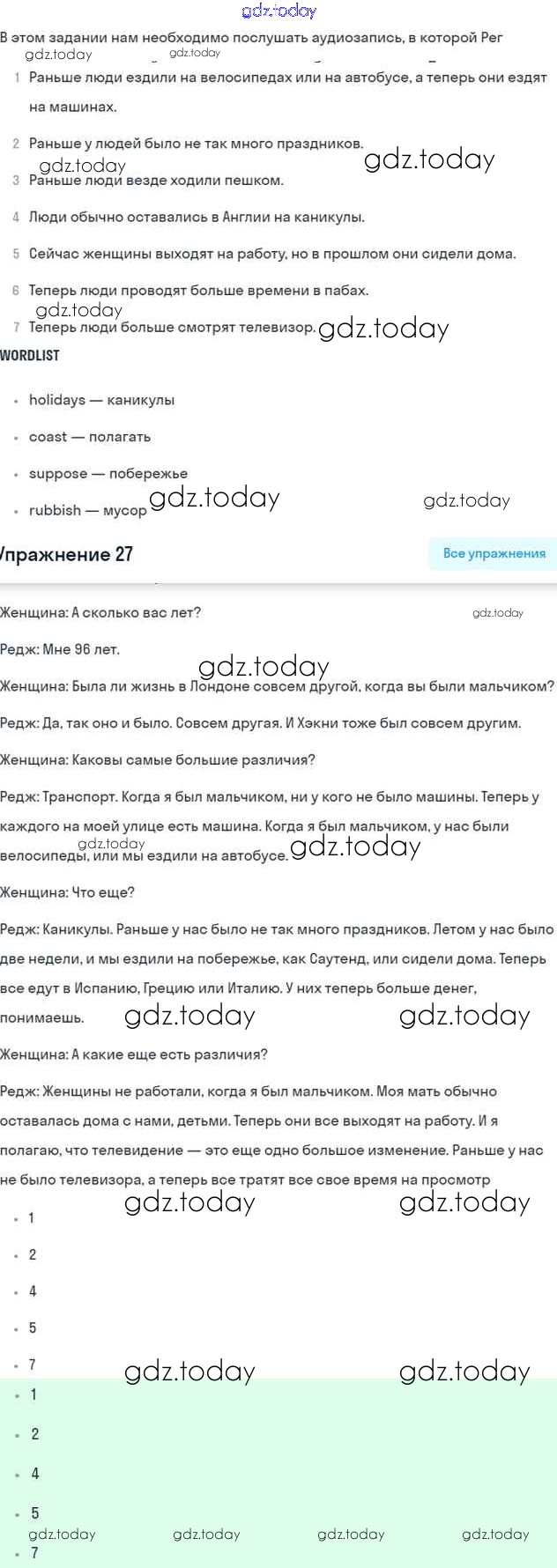 На страницах сайта gdz.today вы найдете учебный и вспомогательный материал, направленный на улучшения знаний школьной программы. ГДЗ - онлайн мир знаний Решение к Unit 3. Talking about old times Часть 1 27 Учебнику по Английскому языку для 7 класса Вербицкая, Гаярделли Вентана-граф Forward 2017