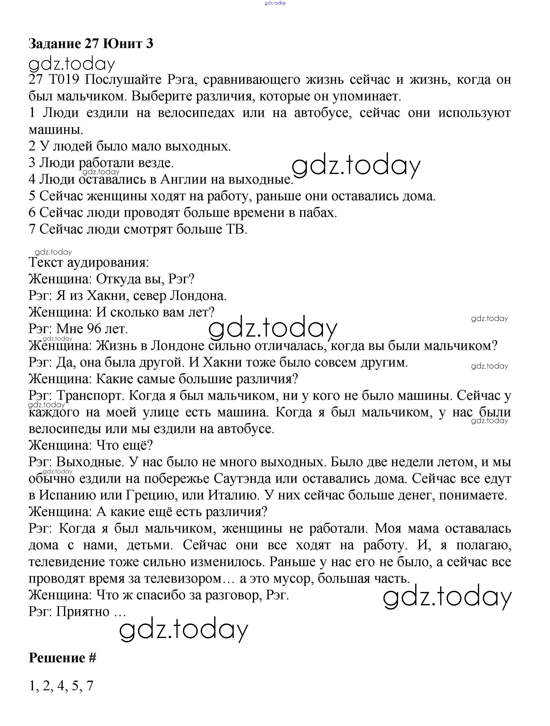 Ответы к Решение к Unit 3. Talking about old times Часть 1 27 Учебнику по Английскому языку для 7 класса Вербицкая, Гаярделли Вентана-граф Forward 2017