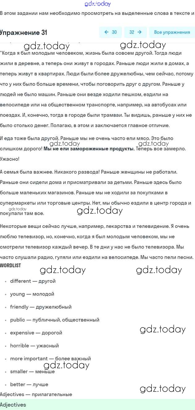 На страницах сайта gdz.today вы найдете учебный и вспомогательный материал, направленный на улучшения знаний школьной программы. ГДЗ - онлайн мир знаний Решение к Unit 3. Talking about old times Часть 1 31 Учебнику по Английскому языку для 7 класса Вербицкая, Гаярделли Вентана-граф Forward 2017