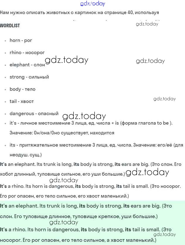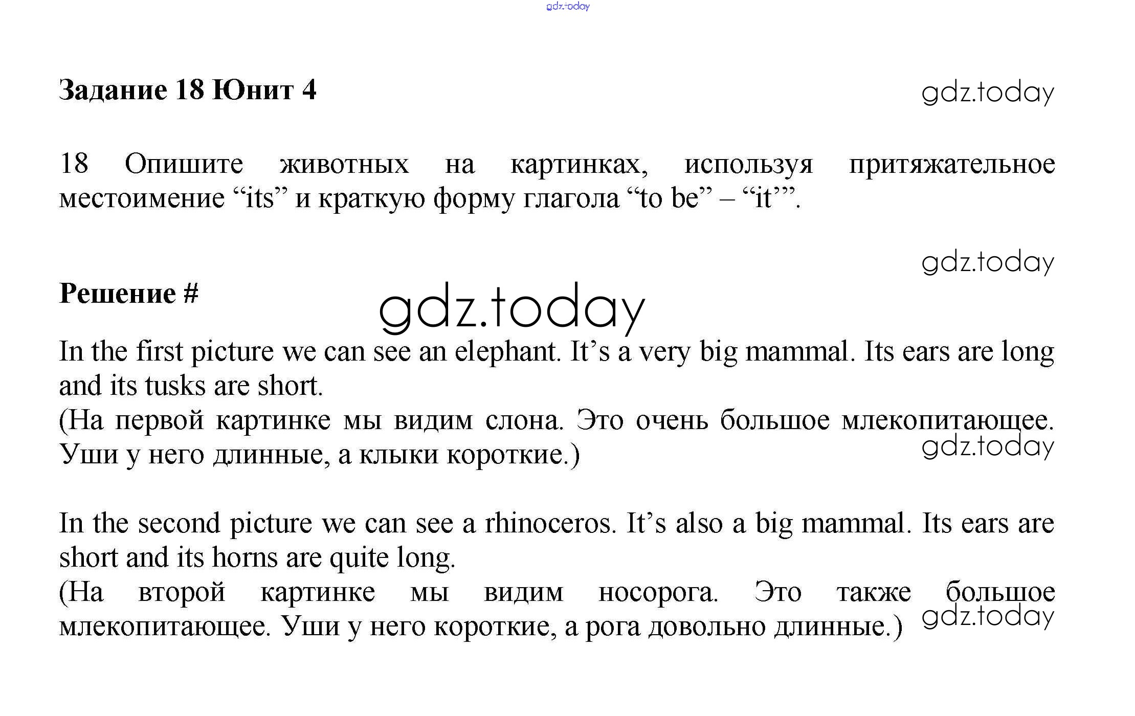 На страницах сайта gdz.today вы найдете учебный и вспомогательный материал, направленный на улучшения знаний школьной программы. ГДЗ - онлайн мир знаний Решение к Unit 4. Animal quiz Часть 1 18 Учебнику по Английскому языку для 7 класса Вербицкая, Гаярделли Вентана-граф Forward 2017