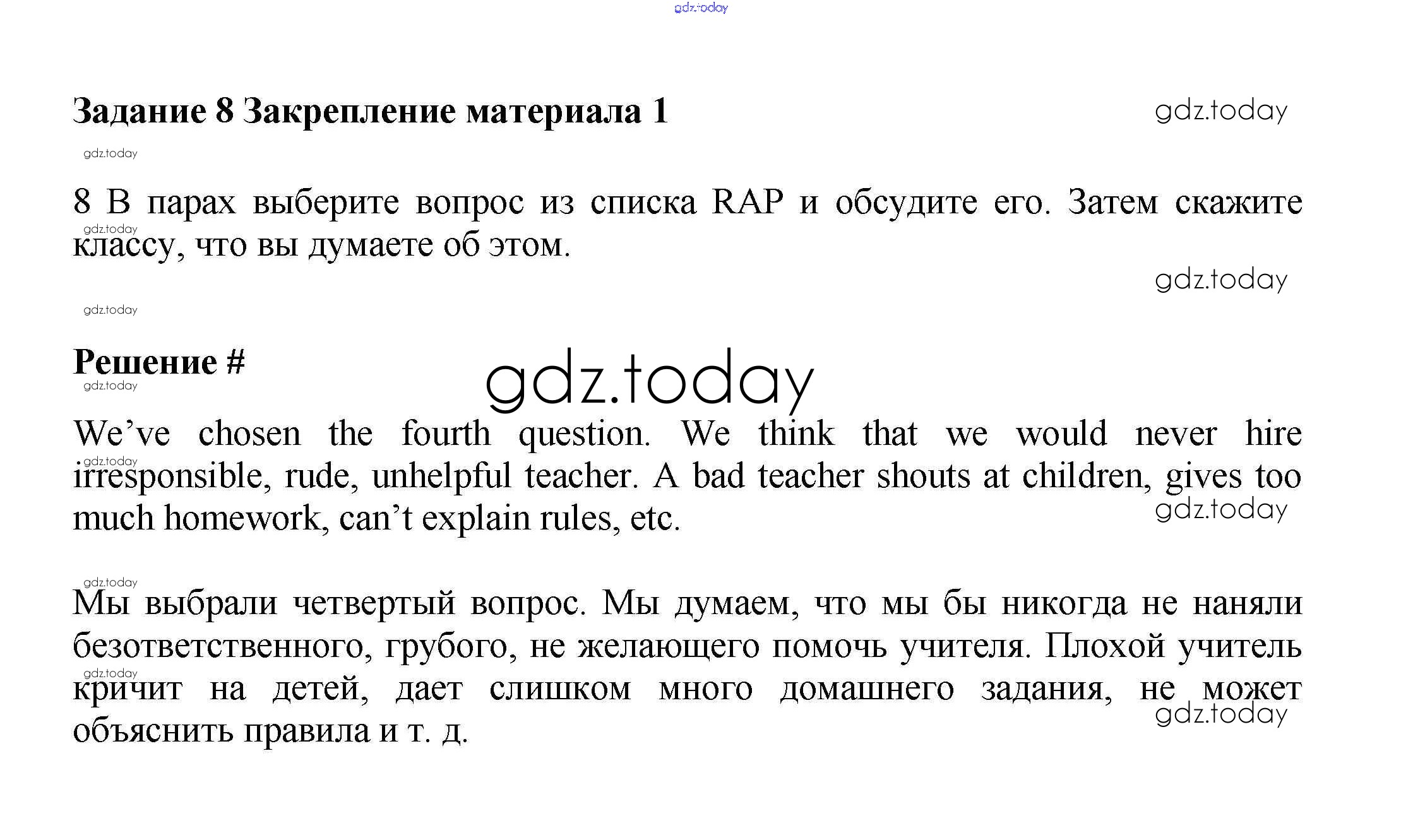 На страницах сайта gdz.today вы найдете учебный и вспомогательный материал, направленный на улучшения знаний школьной программы. ГДЗ - онлайн мир знаний Решение к Consolidation 1 Часть 1 8 Учебнику по Английскому языку для 7 класса Вербицкая, Гаярделли Вентана-граф Forward 2017