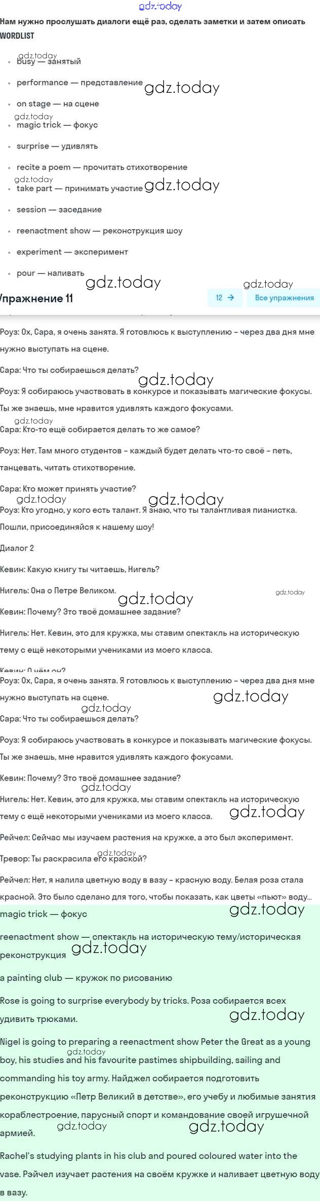 На страницах сайта gdz.today вы найдете учебный и вспомогательный материал, направленный на улучшения знаний школьной программы. ГДЗ - онлайн мир знаний Решение к Unit 5. School activities Часть 1 11 Учебнику по Английскому языку для 7 класса Вербицкая, Гаярделли Вентана-граф Forward 2017