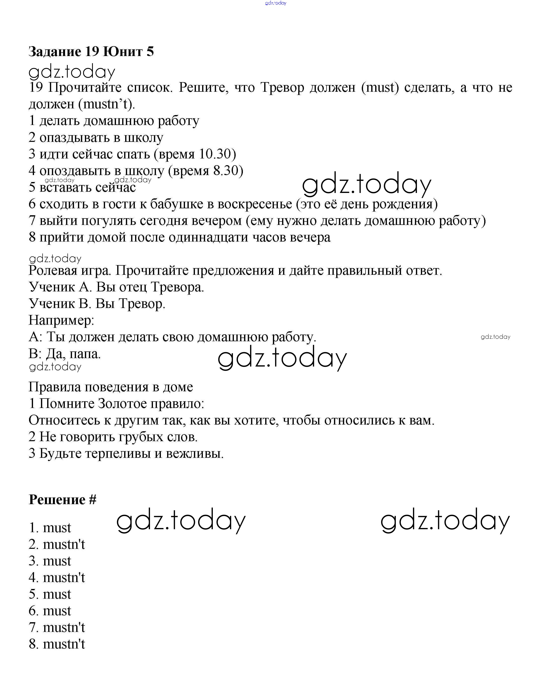 На страницах сайта gdz.today вы найдете учебный и вспомогательный материал, направленный на улучшения знаний школьной программы. ГДЗ - онлайн мир знаний Решение к Unit 5. School activities Часть 1 19 Учебнику по Английскому языку для 7 класса Вербицкая, Гаярделли Вентана-граф Forward 2017