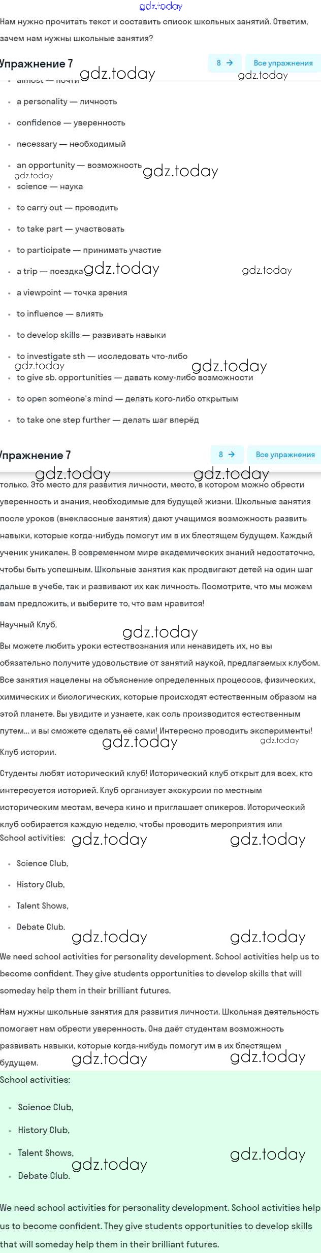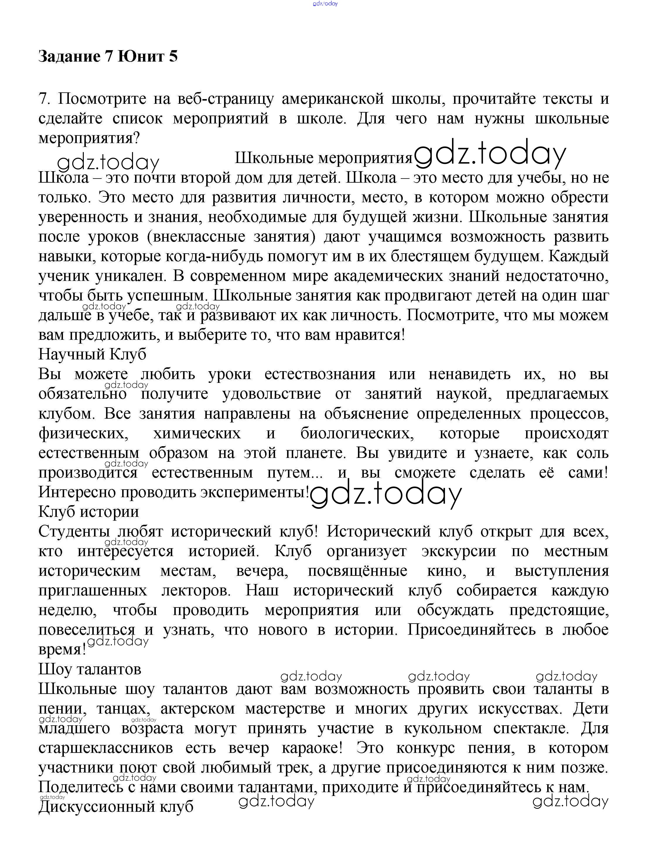 На страницах сайта gdz.today вы найдете учебный и вспомогательный материал, направленный на улучшения знаний школьной программы. ГДЗ - онлайн мир знаний Решение к Unit 5. School activities Часть 1 7 Учебнику по Английскому языку для 7 класса Вербицкая, Гаярделли Вентана-граф Forward 2017