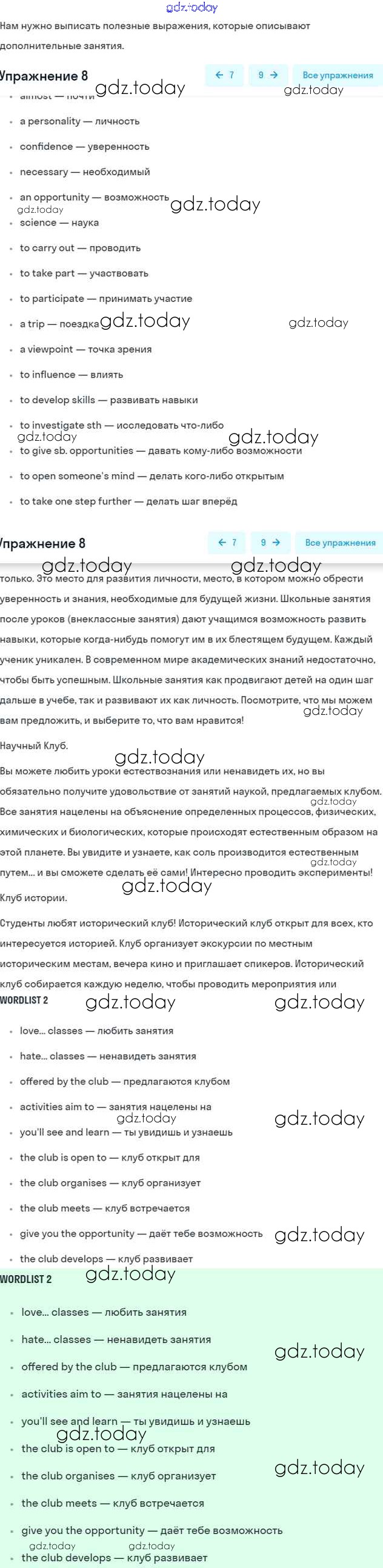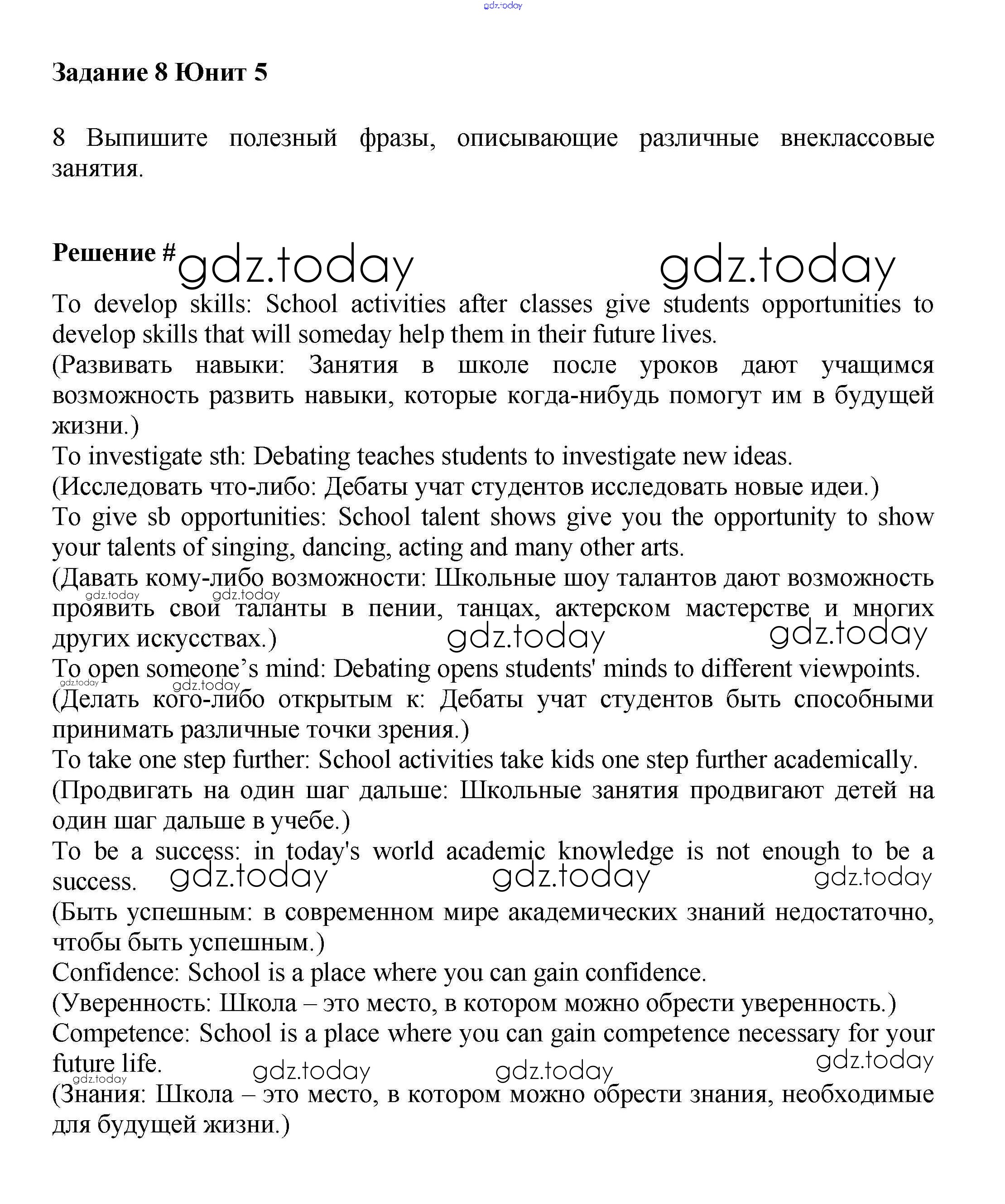 Ответы к Решение к Unit 5. School activities Часть 1 8 Учебнику по Английскому языку для 7 класса Вербицкая, Гаярделли Вентана-граф Forward 2017