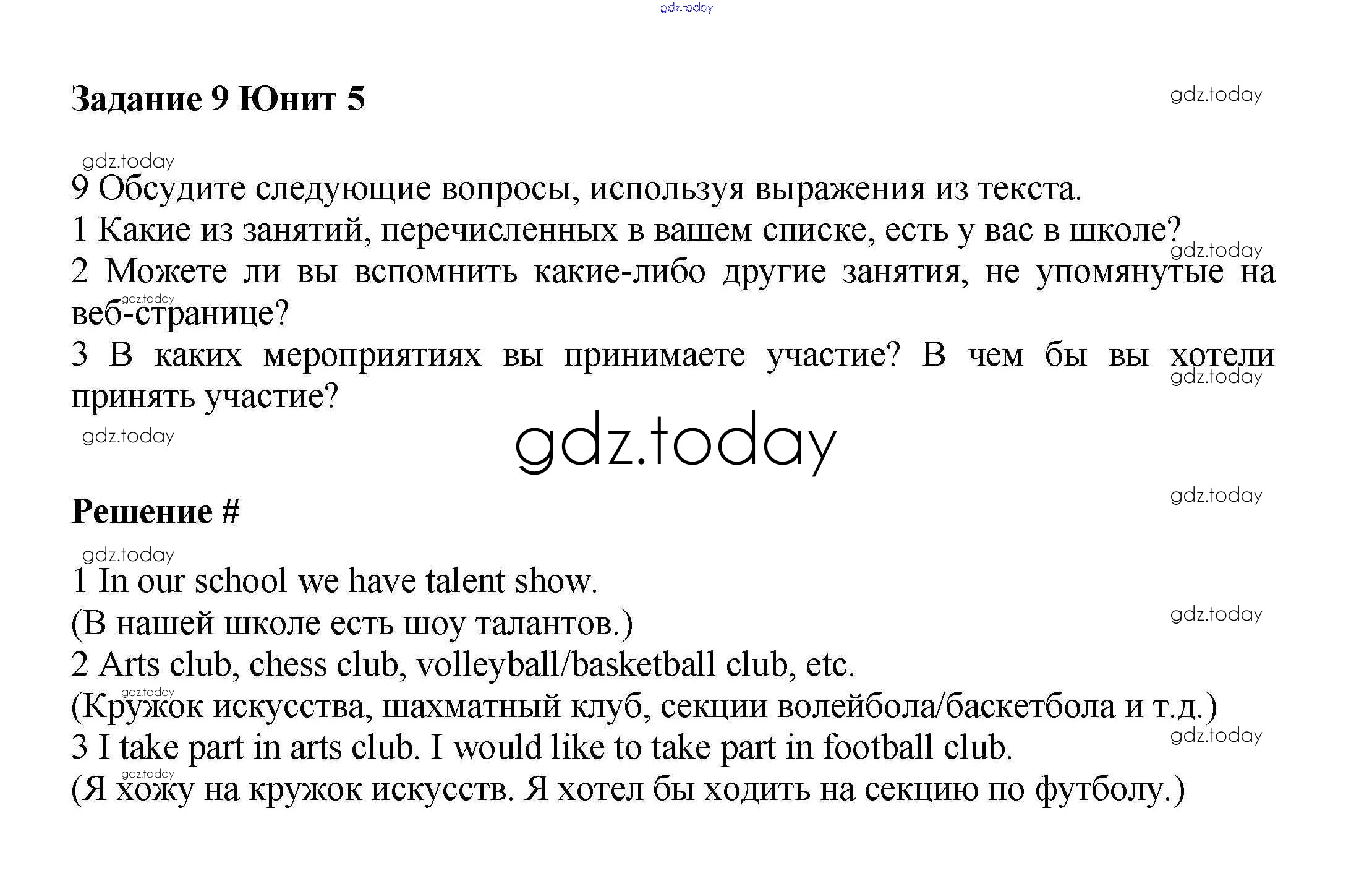 Ответы к Решение к Unit 5. School activities Часть 1 9 Учебнику по Английскому языку для 7 класса Вербицкая, Гаярделли Вентана-граф Forward 2017