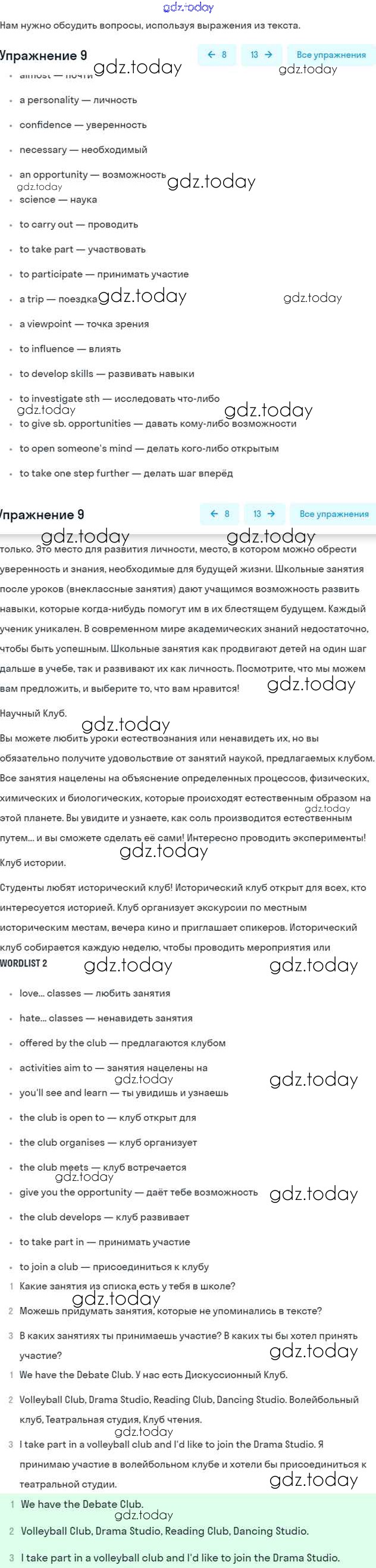 На страницах сайта gdz.today вы найдете учебный и вспомогательный материал, направленный на улучшения знаний школьной программы. ГДЗ - онлайн мир знаний Решение к Unit 5. School activities Часть 1 9 Учебнику по Английскому языку для 7 класса Вербицкая, Гаярделли Вентана-граф Forward 2017